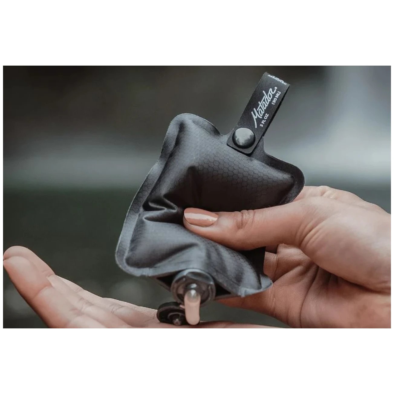Flacoanele pentru articole de toaletă FlatPak™ de la Matador sunt flacoane de călătorie foarte ușoare, cu pereți moi, pentru a călători confortabil cu lichide de toaletă, cum ar fi șampon, săpun, balsam sau loțiune de corp. Acest gadget este fabricat din nailon impermeabil 30D Cordura® ripstop cu construcție sudată patentată, plus o buclă Hypalon pentru agățare. Pur și simplu deșurubați capacul cu orificiul mare de umplere și reumpleți lichidul preferat. Nu este destinat alimentelor sau băuturilor și produselor care conțin alcool.