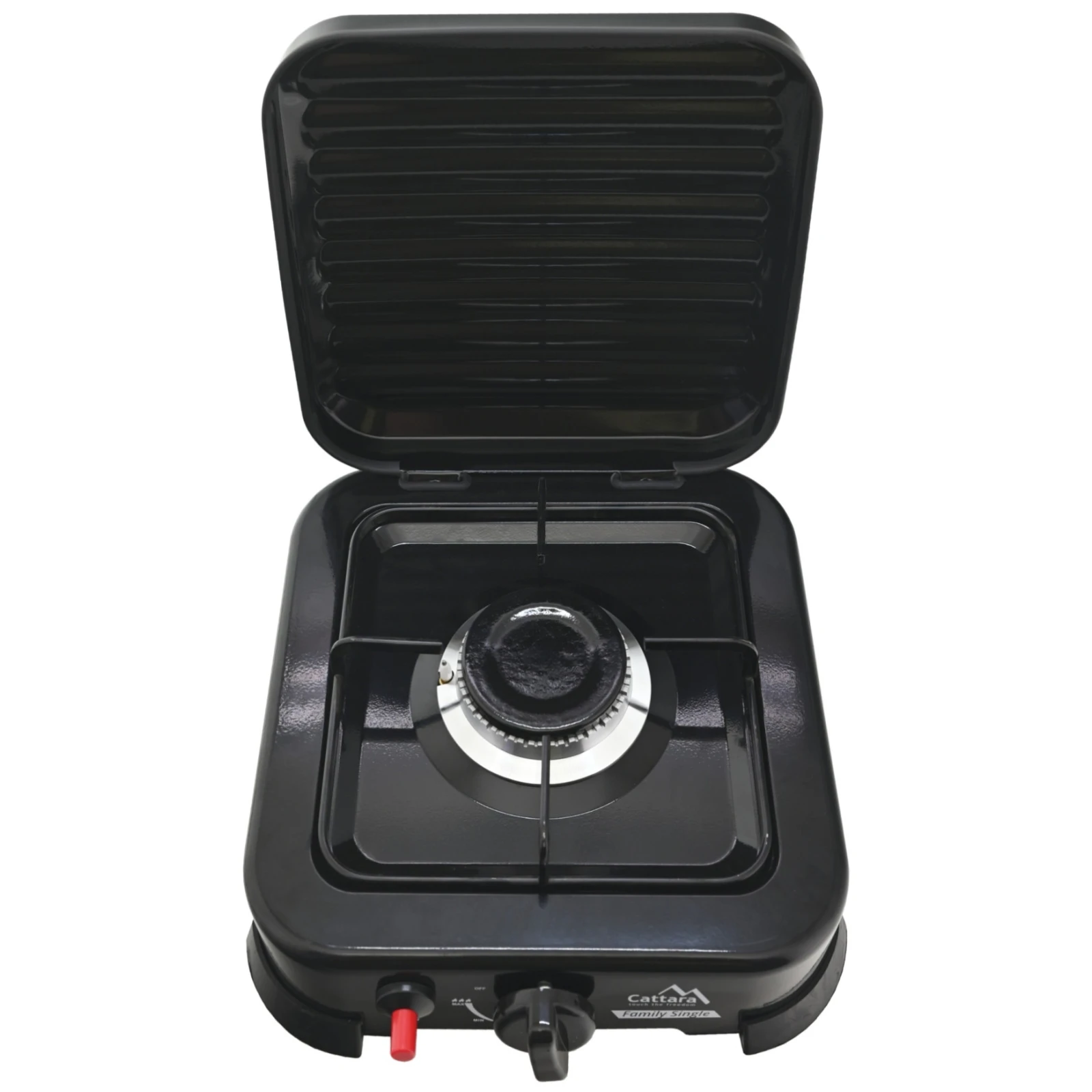 Aragazul pe gaz Cattara Traveler oferă operare simplă și funcționare fiabilă datorită aprinderii piezoelectrice și a debitului de gaz reglabil cu precizie.