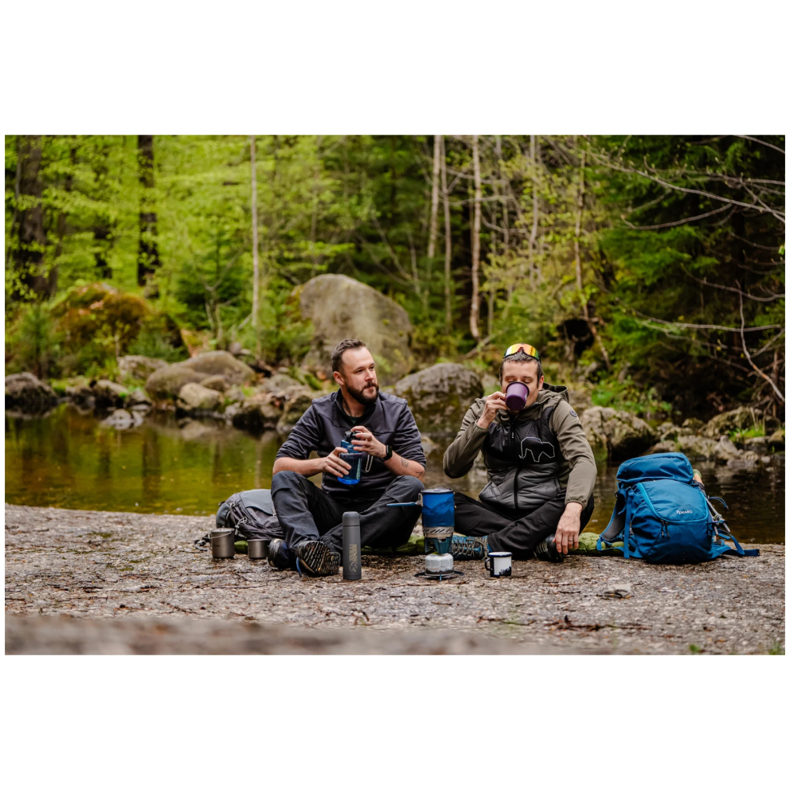Pachetul include, de asemenea, un stabilizator de cartuș, un capac care servește drept strecurătoare și o reducție pentru gătit în alte vase. Se remarcă prin compactitate și toate componentele inclusiv cartușul se plasează în în recipientul principal.