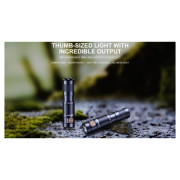 În ciuda dimensiunilor sale minime și a greutății reduse de 45 de grame ,lanterna reîncărcabilăFenix E09R oferă o intensitate luminoasă ridicată de până la 600 de lumeni în modul BURST. Sursa de lumină este puternicul LED Luminus SST-20, care poate ajunge la o distanță de 124 de metri. Oferă cinci moduri de iluminare, dintre care cel mai mic va menține lumina aprinsă continuu timp de până la 70 de ore. Este alimentată de o baterie Li-pol încorporată, cu o capacitate de 800 mAh, care se încarcă prin intermediul unui conector modern USB- ce este direct în lanternă. Oferă un design de calitate, durabilitate și impermeabilitate. Lanterna este concepută pentru a fi folosită ca un instrument de iluminat mic și puternic pentru fiecare zi. Atașată la chei, în buzunar, în geantă sau în rucsac, cu siguranță nu va ocupa mult spațiu.