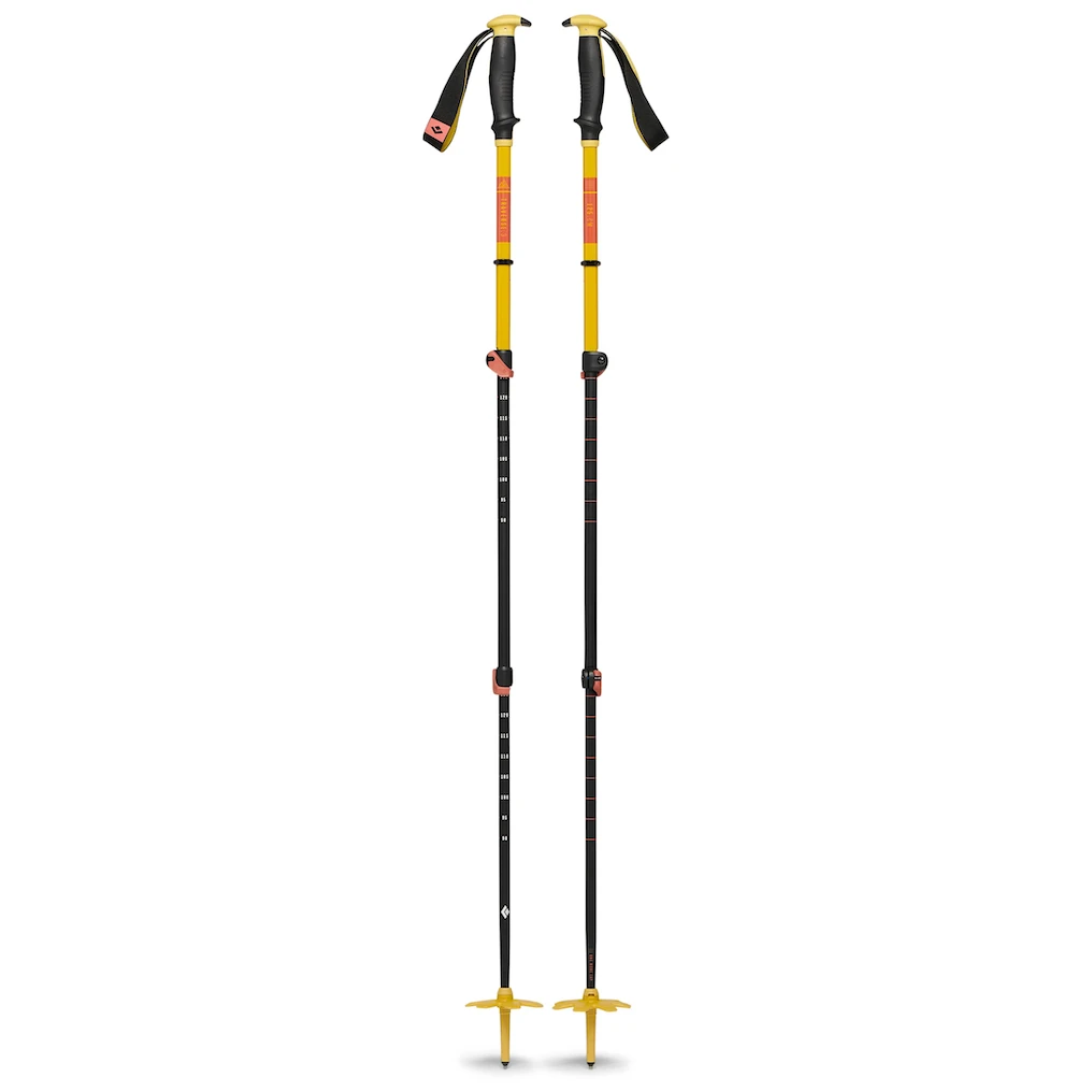 Sistemul de închidere Dual Flick Lock permite reglarea ușoară și rapidă a lungimii chiar și cu mănuși. Bețele au mânere ergonomice, un cârlig la capăt pentru a acționa dispozitivele de legare a schiurilor sau a rachetelor de zăpadă și mânere extinse pentru a parcurge pante abrupte sau traversări. Bucla confortabilă căptușită este reglabilă, iar rozetele cu diametrul mare de 100 mm împiedică bețele să se scufunde în zăpadă.