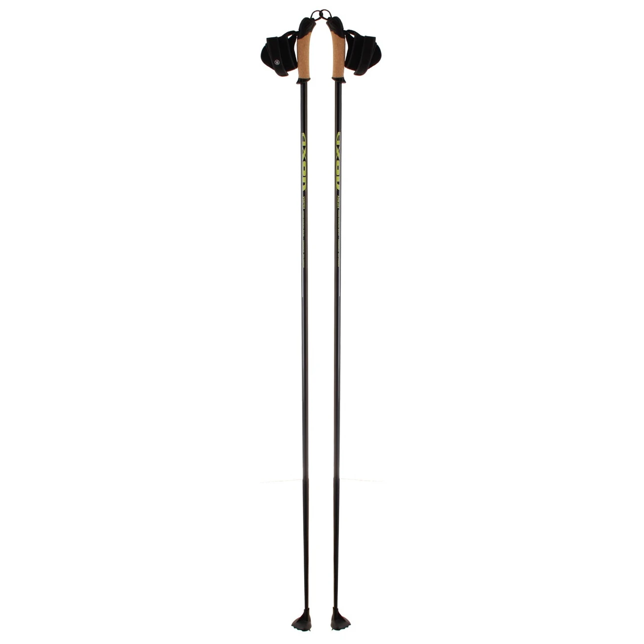 Bețe de schi carbon Activ Profesional de la marca cehă Axon, pentru patinaj și clasic, din carbon 50% cu mâner de plută, curea reglabilă și coș de 60 mm diametru.