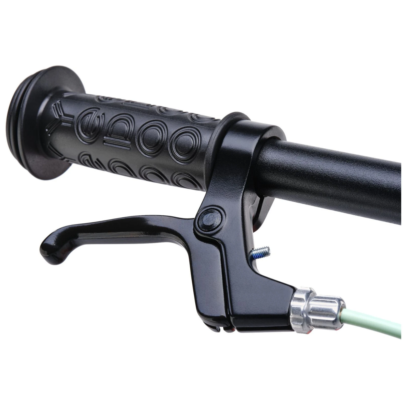 Mânerele cu formă ergonomică sunt ușor de ținut și nu apasă pe mâini. Pentru o siguranță sporită, capetele lor sunt lărgite și întărite. Frânele de calitate sunt baza siguranței generale a bicicletei de echilibru. Siguranța la condus este sporită de jantele din aluminiu de calitate, care sunt ușoare, puternice și durabile.