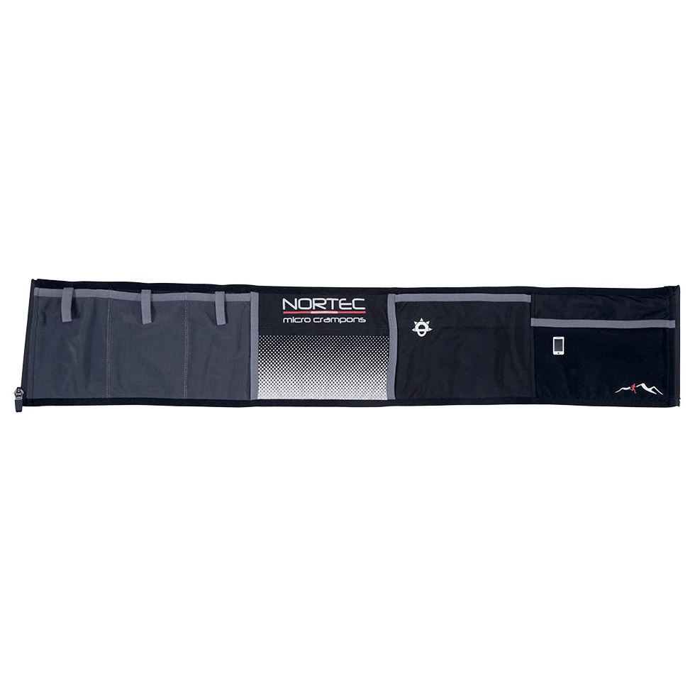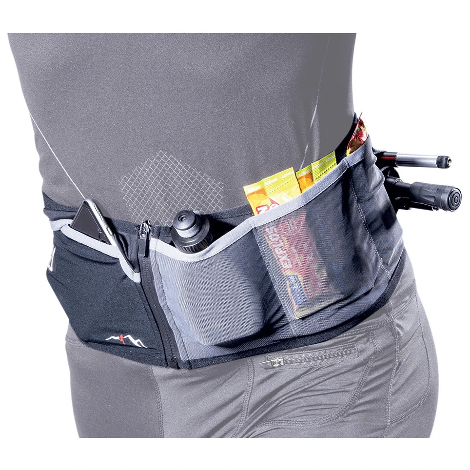Buzunarul mare este fabricat din material rezistent la apă și poate conține un telefon mobil. Alte două buzunare sunt concepute pentru geluri, batoane și alte alimente, în timp ce o bandă velcro practică cu un inel fixează în siguranță cheile. Borseta are, de asemenea, un buzunar pentru o sticlă sau bețe de trekking și un fermoar dublu pentru reglarea circumferinței. Detaliile reflectorizante sporesc siguranța atunci când alergați în amurg sau pe întuneric.