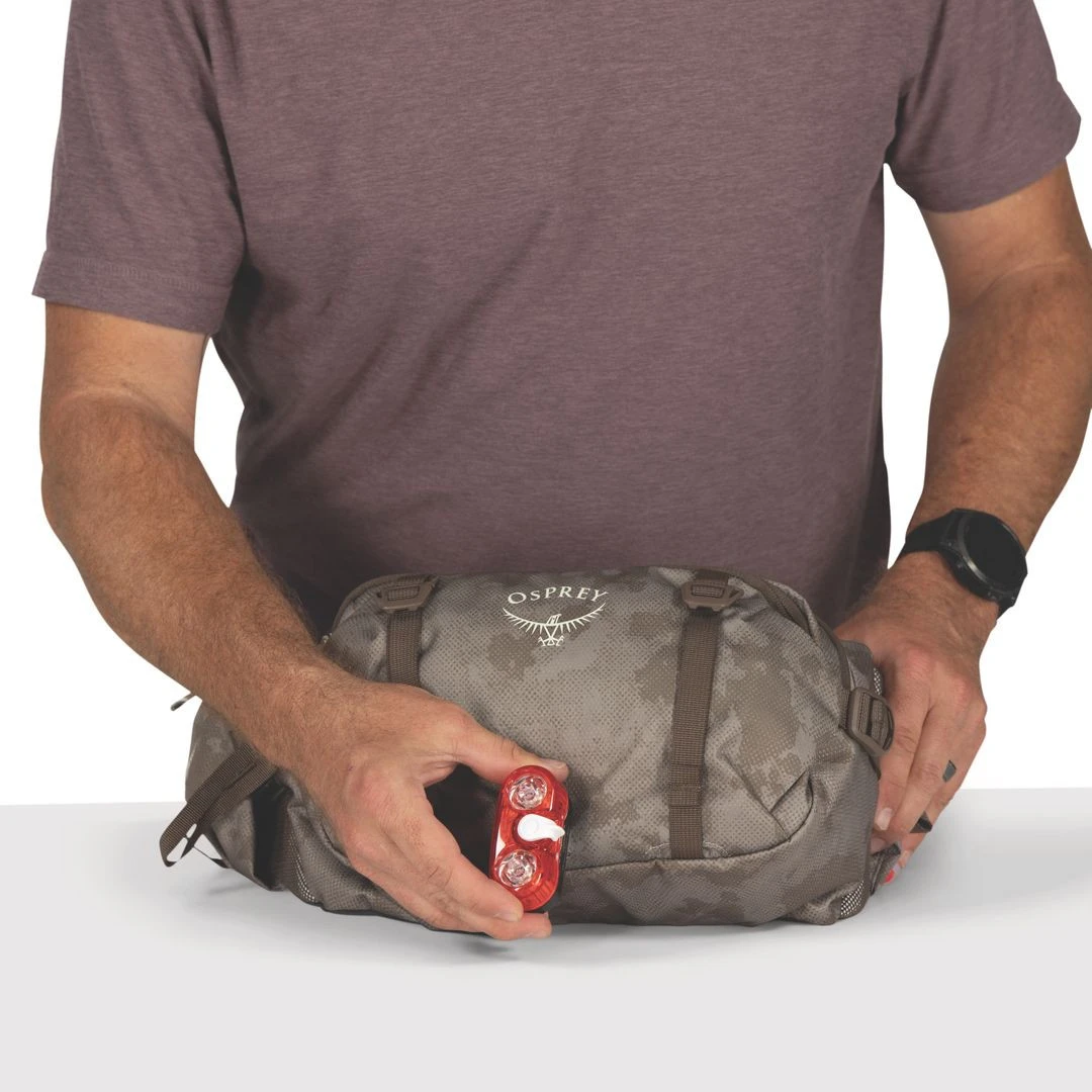 Curelele laterale de compresie fixează conținutul din interior, reduc dimensiunea borsetei și permit atașarea unei jachete ușoare sau a unui hanorac. Desigur, există elemente reflectorizante și o buclă pentru atașarea unui semnalizator (nu este inclusă în pachet)