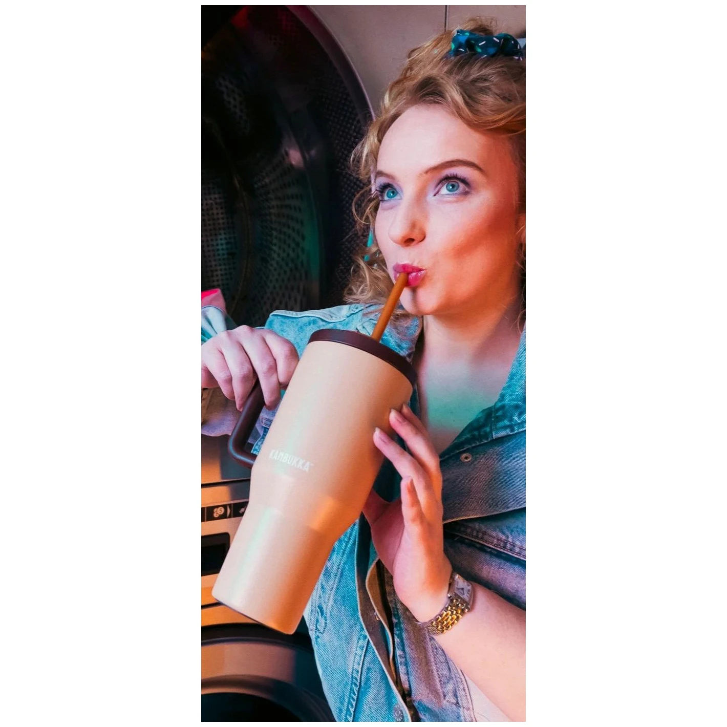 Faceți cunoștință cu Rio, cana termoizolantă cu pai telescopic. Cana termoizolantă colorată de 950 ml (32 oz), etanșă, vă menține smoothie-urile, milkshake-urile sau alte băuturi reci până la 24 de ore. Rio este fabricată din oțel inoxidabil 18/8 cu pereți dubli, izolat în vid, pentru cea mai bună calitate. În plus, nu conține BPA, astfel încât puteți bea în siguranță și sănătos. Pentru o curățare ușoară, puneți Rio în mașina de spălat vase.