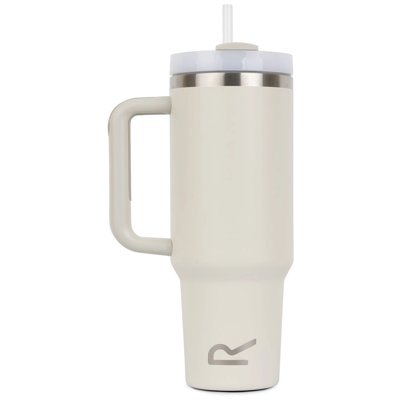 Cana termos practică Thermulate Insulated Mug 1.2L de la marca Regatta este fabricată dintr-o combinație de oțel inoxidabil, plastic și silicon. Menține în mod fiabil băuturile reci până la 12 ore sau calde până la 6 ore. Suprafața din oțel inoxidabil atât la exterior, cât și la interior este extrem de rezistentă, ușor de întreținut, iar toarta cănii se potrivește perfect în mână. Partea inferioară este cauciucată și, datorită acestui fapt, nu alunecă. Capacul etanșează perfect, iar băutul este foarte confortabil datorită paiului rabatabil.
