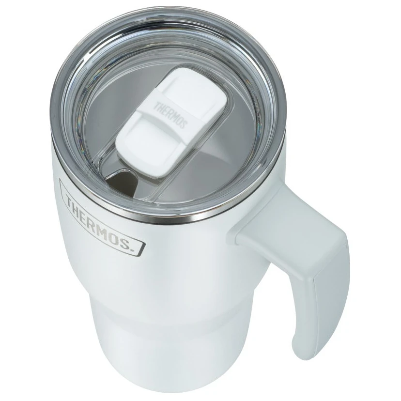Mânerul ergonomic asigură o transportare confortabilă, iar datorită soluției inteligente a capacului, termosul este potrivit atât pentru dreptaci, cât și pentru stângaci. Îl puteți ajusta cu ușurință în funcție de nevoi. Datorită diametrului bazei de 7,5 cm, se potrivește fără probleme în majoritatea suporturilor auto. Este practic și capacul demontabil cu garnitură detașabilă, care permite curățarea și întreținerea ușoară.