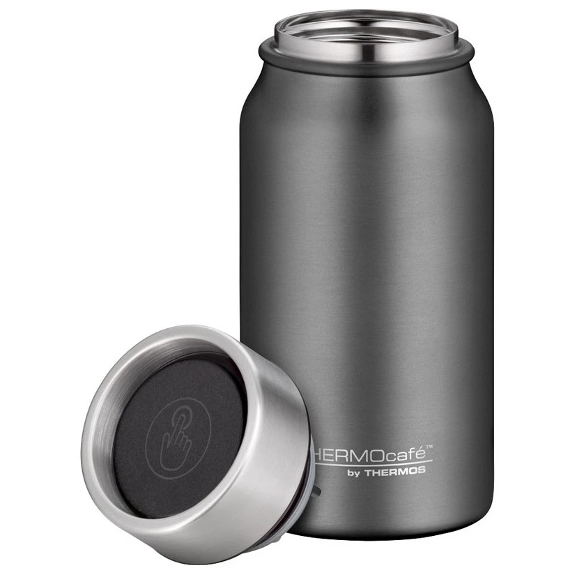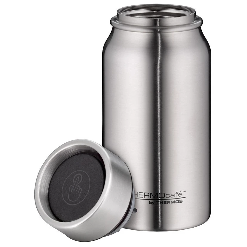 Thermos Thermocafé 350 ml este un termos ușor și compact din oțel inoxidabil cu izolație termică cu vid cu pereți dubli. Datorită dimensiunilor sale, se potrivește cu ușurință în majoritatea suporturilor auto și este o alegere ideală pentru cafea, ceai și băuturi reci în timpul navetei sau deplasărilor pe parcursul zilei.