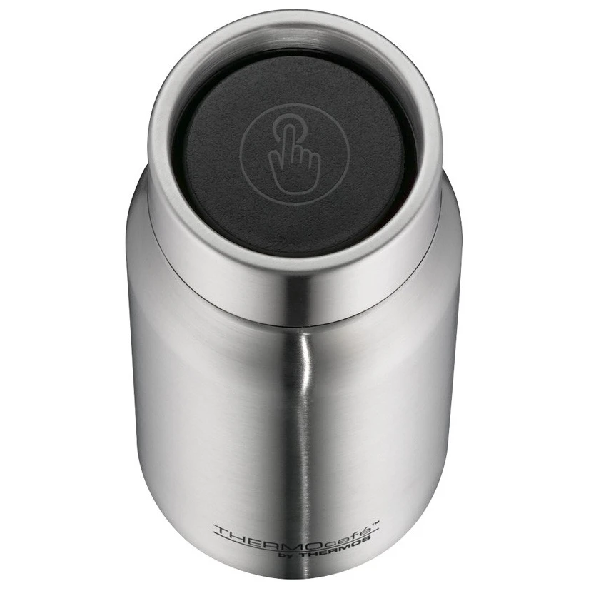 Termosul este echipat cu un capac practic cu buton, care permite deschiderea și închiderea cu o singură mână. În stare închisă, termosul este etanș, astfel încât să nu vă faceți griji cu privire la scurgeri accidentale de conținut. Construcția specială a capacului permite băutul lichidului pe toată circumferința capacului, lucru pe care îl veți aprecia în special în situațiile în care trebuie să vă concentrați și să beți cu o singură mână.