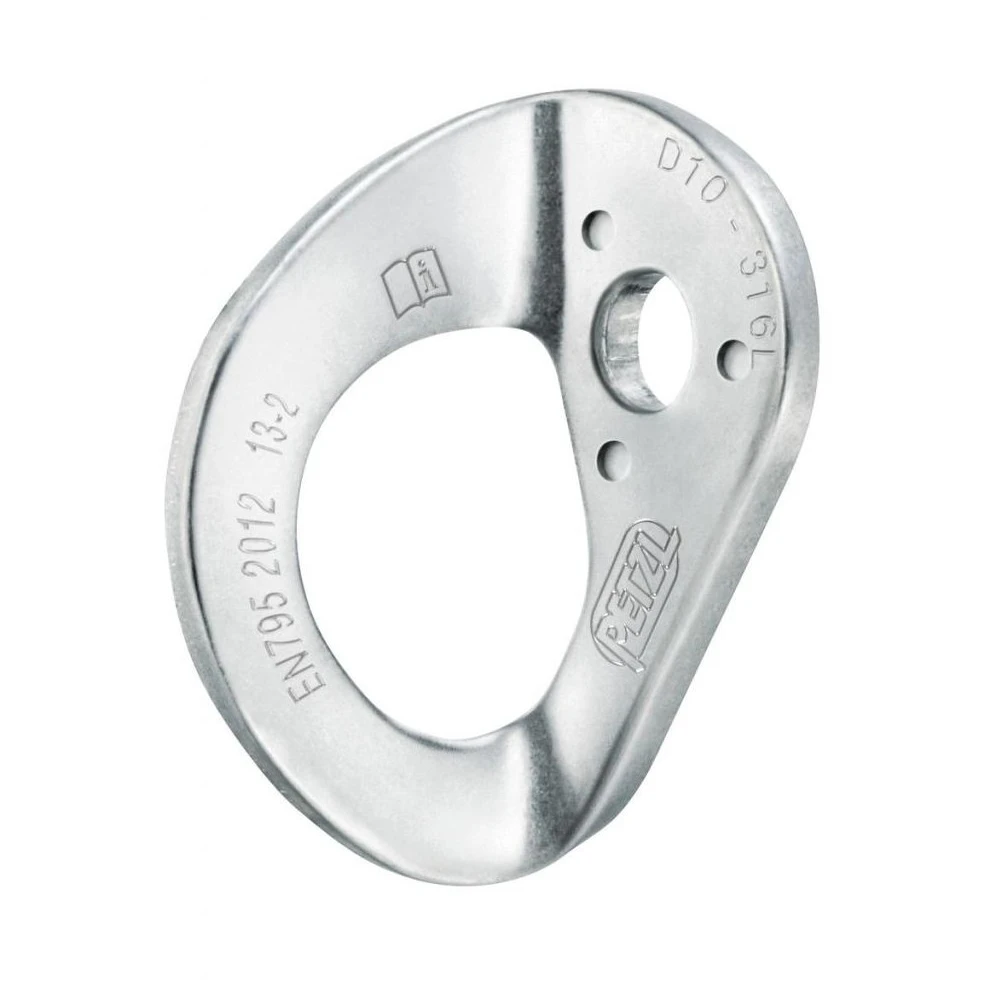 Plăcuța auxiliară Coeur Stainless de la Petzl este confecționat din oțel inoxidabil, iar împreună cu niturile creează un set rezistent de ancorare pe stânci.