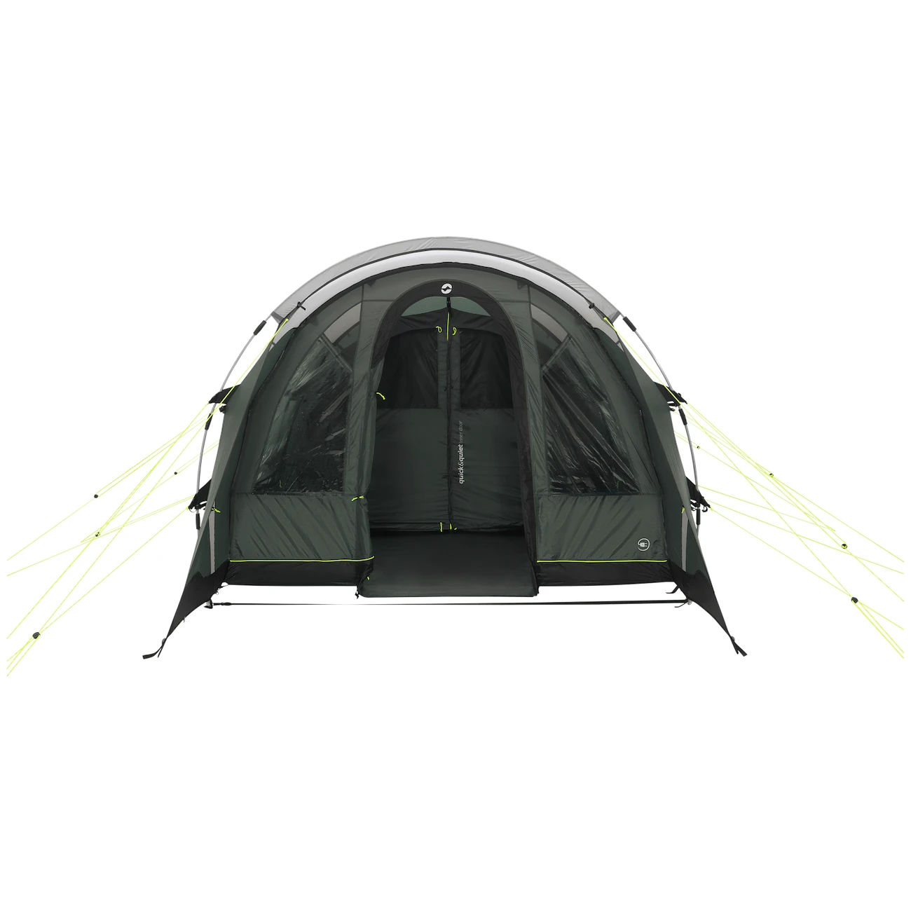 În cort se intră printr-un acces fără prag, cu plasă de țânțari, care poate fi complet strânsă pe o parte. Holul spațios are o copertină mare în fața intrării, o podea, un acoperiș luminos și ferestre nuanțate, care iluminează suficient spațiul, dar în același timp protejează împotriva soarelui și a radiațiilor UV. Dacă aveți nevoie de mai multă intimitate, puteți închide draperiile până la înălțimea dorită a ferestrei. În spatele holului se află două dormitoare întunecate cu plase de țânțari, oferind spațiu pentru un somn liniștit. Ușile sunt prevăzute cu benzi magnetice integrate, care permit o intrare rapidă și silențioasă în cort. Pentru o închidere mai fermă, sunt disponibile și fermoare.