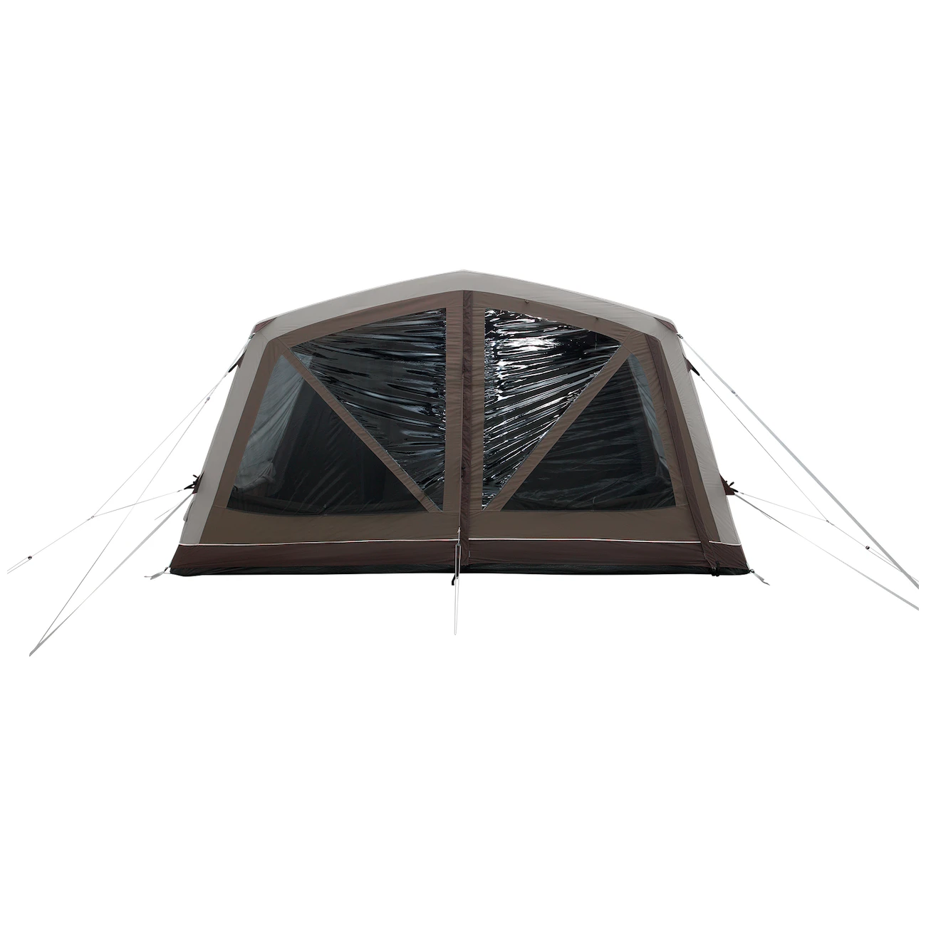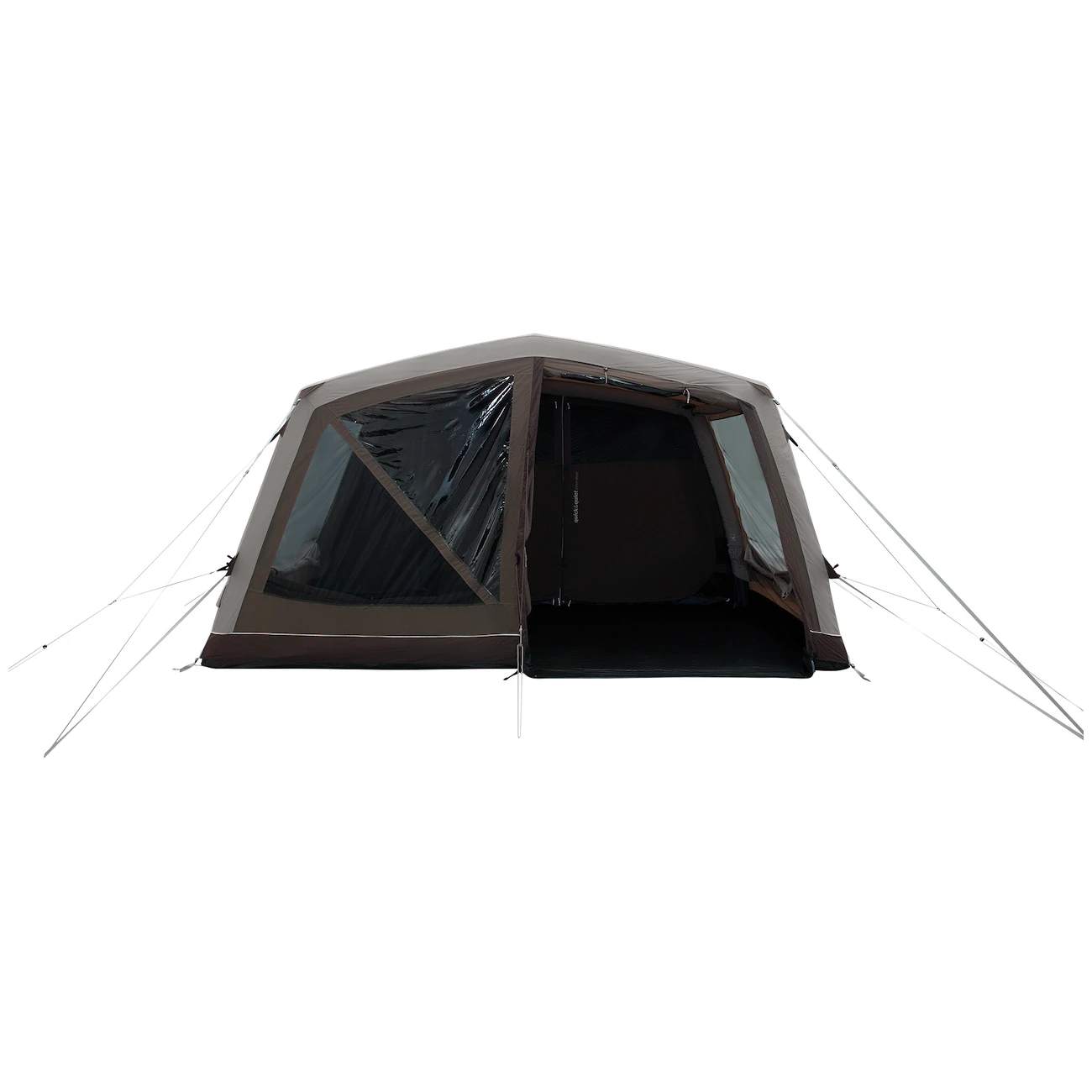 Structură gonflabilă One Air System este format din camere de aer preformate pe care le umflați toate cu o singură supapă. Aceste camere oferă stabilitate împreună cu bețe de oțel, pini de ancorare și corzi. Fiecare coardă este fixată de cort în două locuri, ceea ce distribuie tensiunea și întinde mai bine pânza exterioară. Există, de asemenea, o curea de susținere de-a lungul tuburilor de aer în punctele cheie. Șnururile sunt întotdeauna împachetate ordonat pe prelata exterioară, ceea ce este foarte practic, deoarece nu se încurcă în timpul ambalării. Sunt disponibile curele rezistente, cu reglare rapidă, în caz de vânt. Forma aerodinamică Aerodinamică Storm Protecția 10 oferă protecție împotriva vântului de până la 102 km/h.
