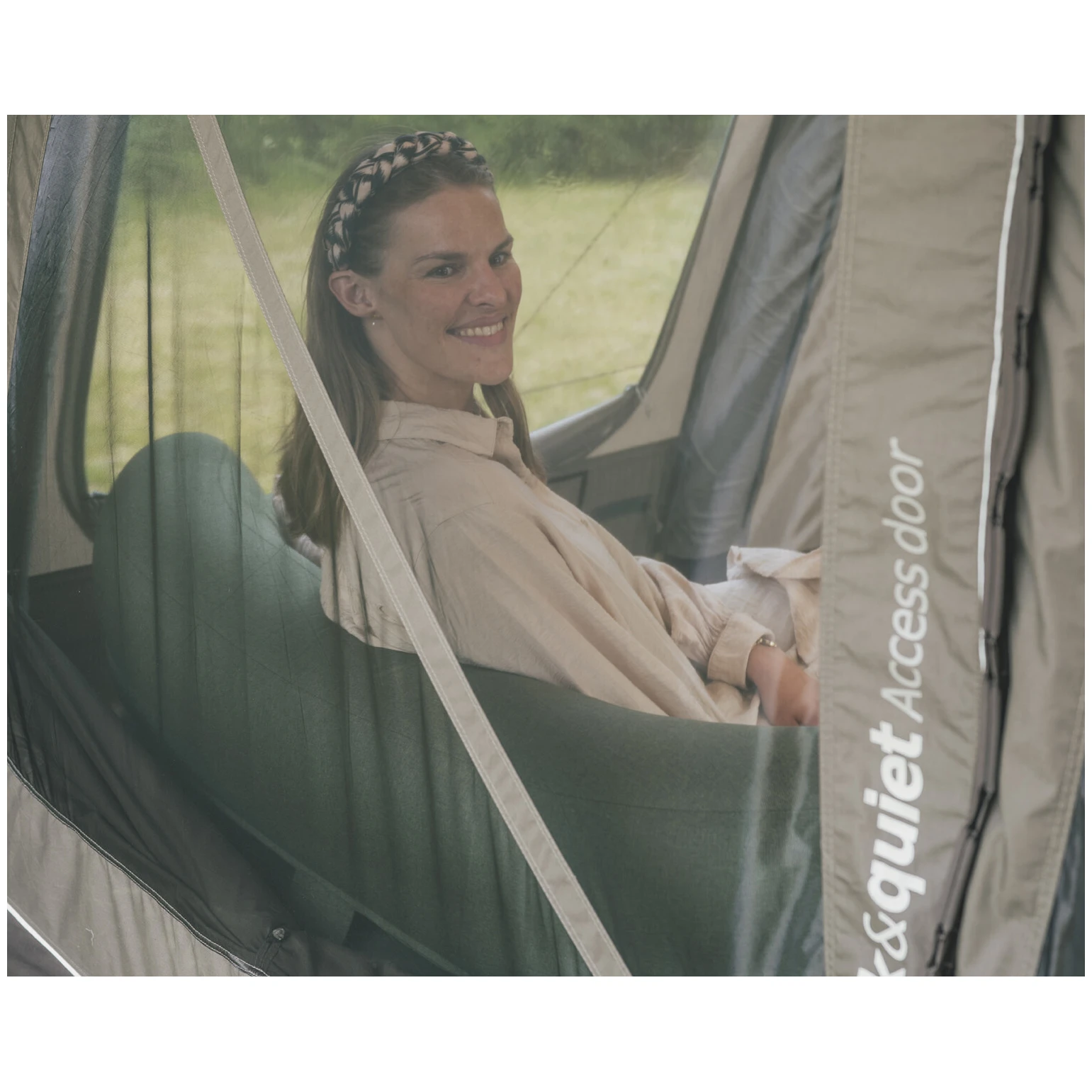 Cortul dispune, de asemenea, de un sistem de ventilație sofisticat, în care partea din spate a cortului are o gură de ventilație care se poate închide cu o plasă de țânțari, care permite aerului să circule prin cort atunci când ușa sau ferestrele sunt deschise. De asemenea, are buzunare de depozitare, prize acoperite pentru prelungitoare care vă permit să conectați o lampă sau să vă încărcați telefonul mobil. Veți aprecia, de asemenea, sistemul Hooktrack, la care puteți atașa obiecte ușoare, cabluri și lămpi pe "șine" pre-pregătite.