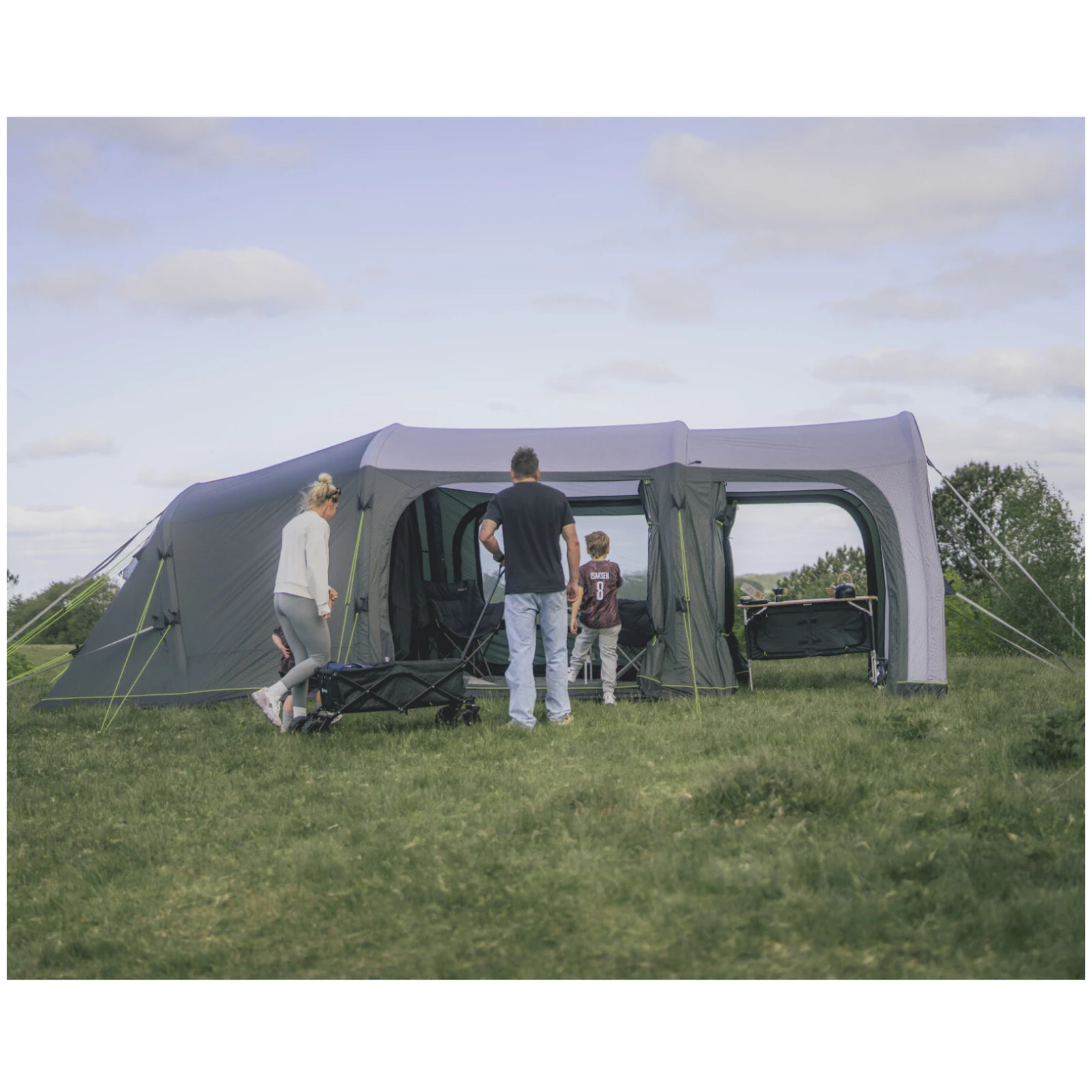 Iowa 6 Air este un cort gonflabil de familie din colecția Premium Air de la marca daneză Outwell, care oferă adăpost pentru 6 persoane în trei dormitoare, un hol spațios și o copertină.