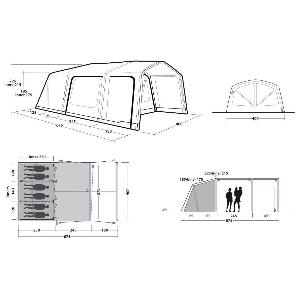 Pentru cort, pot fi achiziționate camere de aer de rezervă Air Repair, care permit o înlocuire rapidă și ușoară a tuburilor deteriorate. Cortul este compatibil cu Air Repair - Kit tub 2 (roșu) și Tube Yellow E (galben). Pentru confort maxim în hol, separat este disponibil un covor original. Sub podea puteți plasa o prelată personalizată de protecție.