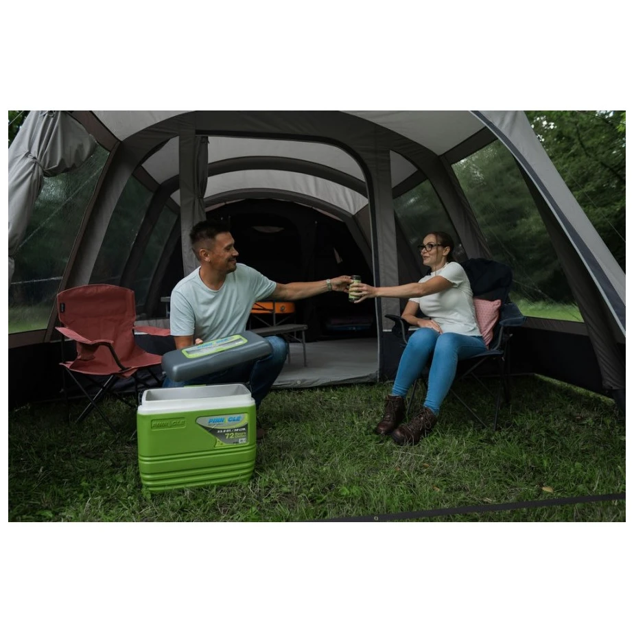 Cortul este potrivit pentru până la 6 persoane, iar construcția sa foarte simplă și rapidă datorită pompei AirBeam® . Producătorul însuși precizează că se umflă în 12 minute. Oferă 3 dormitoare care pot fi separate și sunt confecționate din țesătură Nightfall, care contribuie la blocarea luminii de zi. Urmează o zonă de locuit din două secțiuni pentru o masă de camping sau alt mobilier. În același timp, în cadrul unui cort atât de mare se găsește sistemul Drop Down Door Step, care reprezintă o ușă pliabilă. Astfel accesul este posibil și cu un cărucior.
