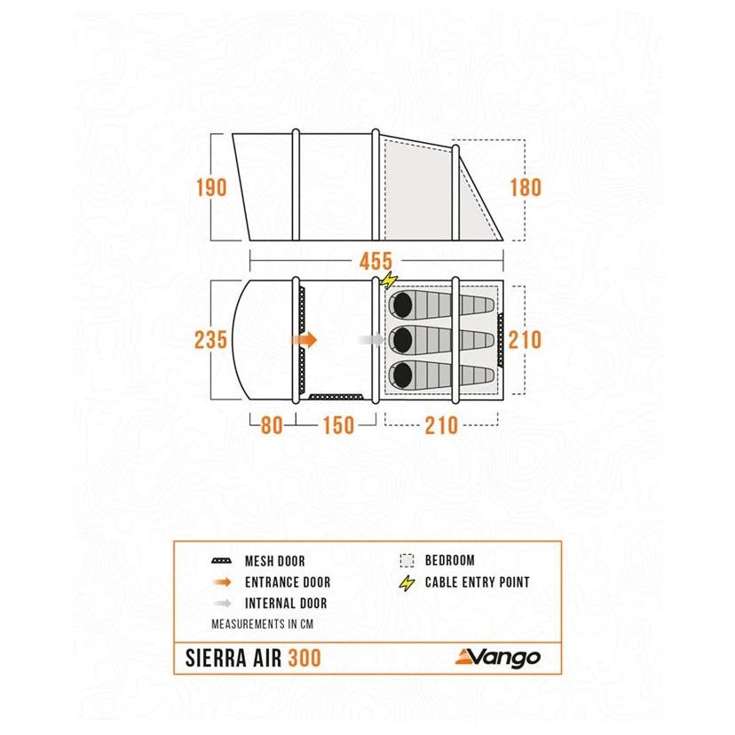 Cortul Vango Sierra Air 300 este alegerea ideală pentru camping confortabil pentru grupuri mai mici sau cupluri care caută suficient spațiu și o montare simplă a cortului. Datorită tehnologiei AirBeam®, construcția cortului este rapidă și fără efort.