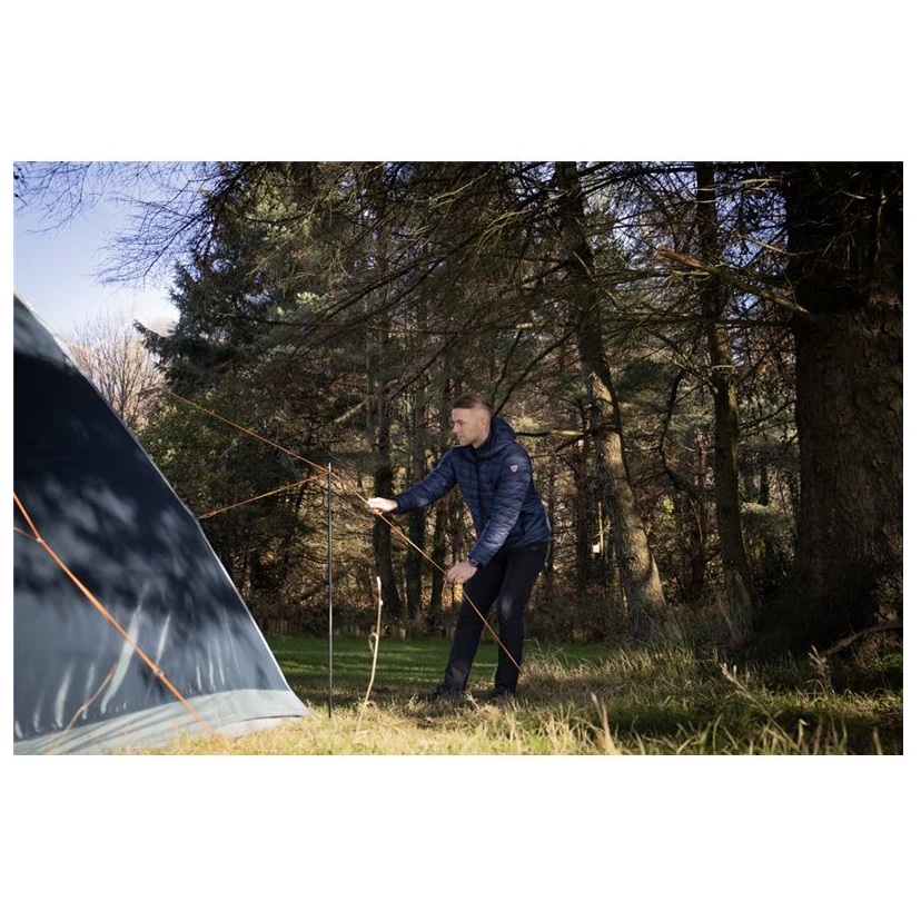 Cortul are o tendă din poliester Protex® 70D care este impermeabilă până la 3000 mm. Acest material oferă o protecție excelentă împotriva ploii și asigură o durată lungă de viață a culorilor datorită tehnologiei ColourLok. Interiorul este spațios, cu o sufragerie mare, oferind suficient spațiu pentru familie sau prieteni.