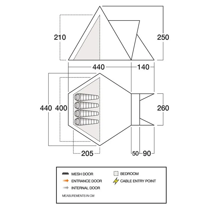 Acest model are un sistem de ventilație încorporat Vango AirZone, care asigură un flux optim de aer. Cortul este, de asemenea, echipat cu TBS®II Tension Band System, pentru stabilitate în condiții cu vânt și ajustare ușoară pe teren denivelat.