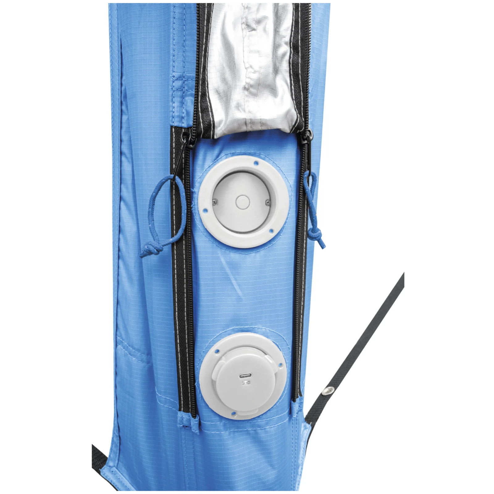 Cortul de plajă Aquamar 250 Auto Up de la brandul Brunner se remarcă prin construcția sa autogonflabilă. Este echipat cu un sistem revoluționar de umflare automată A.I.S., integrat direct în cort. Astfel, nu trebuie să existe griji cu privire la umflarea îndelungată cu o pompă manuală în timpul construcției cortului, pur și simplu se activează sistemul iar cortul se umflă singur. Energia este furnizată de o baterie LiOn integrată care poate fi reîncărcată prin intermediul unui cablu USB-C.