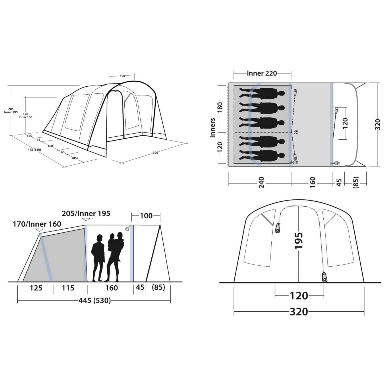 cort de familie gonflabil pentru cinci persoane