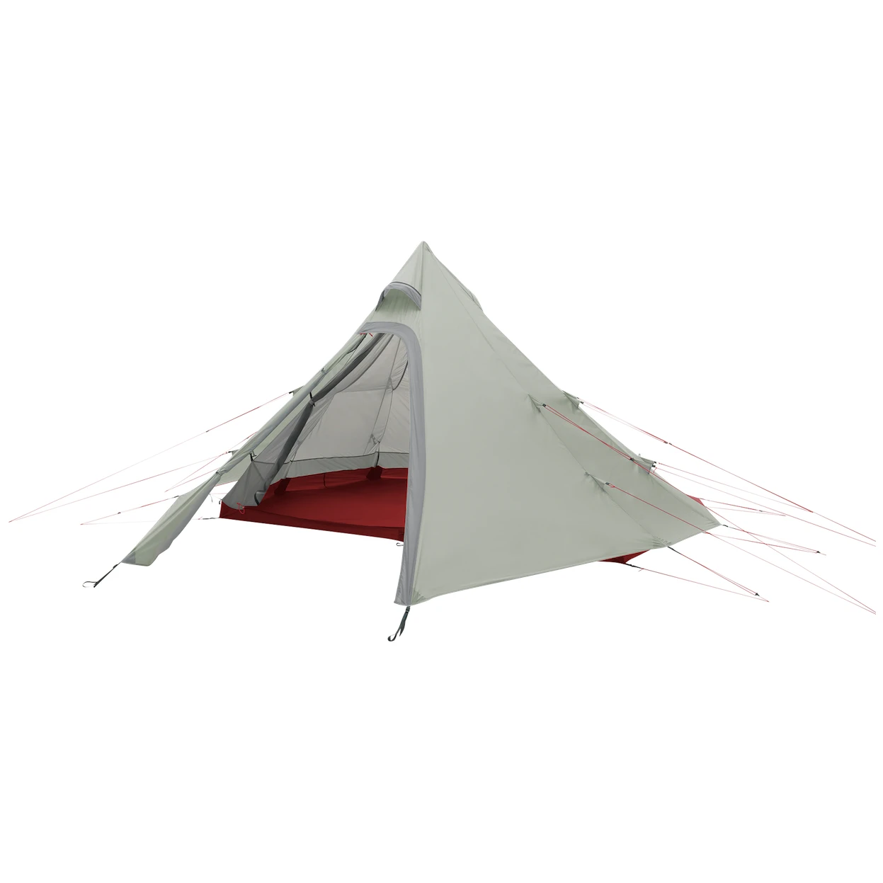 Prelata exterioară este rabatată în față la intrare, creând astfel un spațiu acoperit pentru gătit. În interior se găsesc buzunare integrate din plasă pentru depozitarea obiectelor mici și un loc pentru agățarea lanternei.
