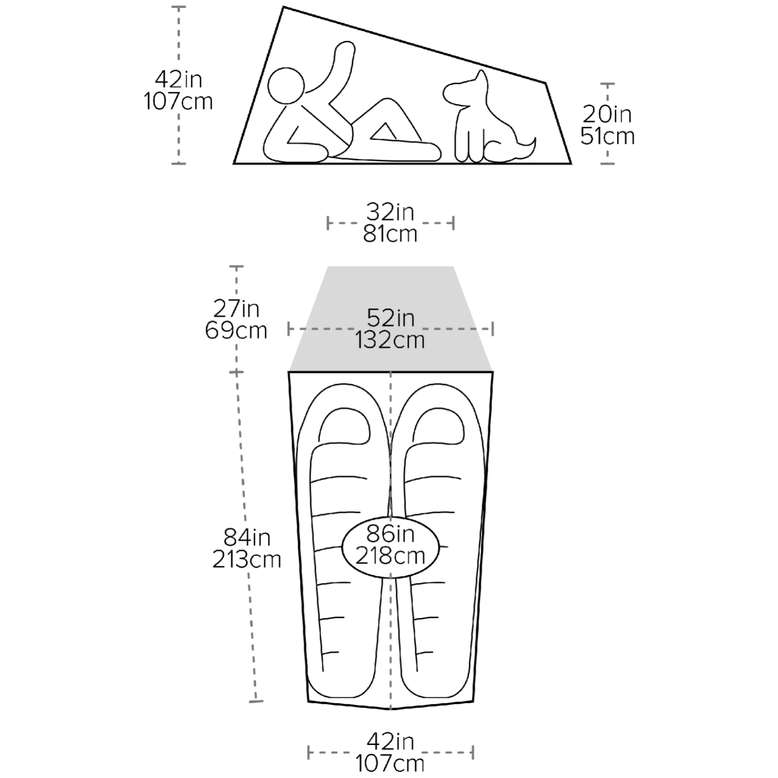 132/107 x 218 x 107 cm