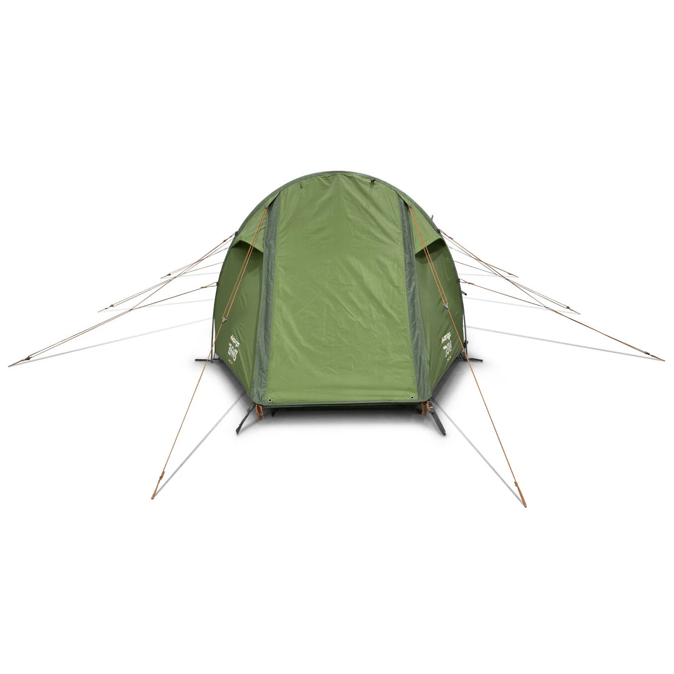 Tenda Protex Eco Ripstop din poliester rezistent oferă o rezistență la apă de 3.000 mm HH și cusături complet sigilate, asigurând o protecție fiabilă împotriva ploii. Podeaua din poliester 70D PU cu o coloană de apă de 6.000 mm HH este rezistentă, ușor de curățat și, datorită construcției tip cadă, protejează interiorul cortului chiar și pe vreme nefavorabilă.