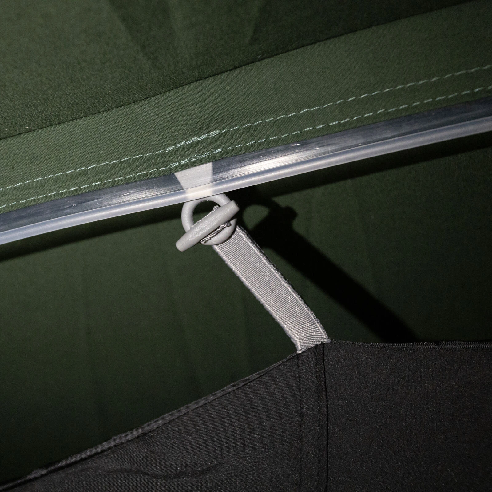 Construcția spațioasă, cu pereți aproape verticali, permite utilizarea completă a spațiului interior, astfel încât să puteți amplasa cu ușurință scaune, o masă sau cutii de depozitare în interior. În plus, veranda atașată în față oferă un spațiu de locuit suplimentar, ideal pentru a petrece timp afară pe ploaie sau pentru jocuri. Spațiul interior al cortului este luminos și aerisit datorită ferestrelor Diamond Clear, care maximizează lumina naturală.