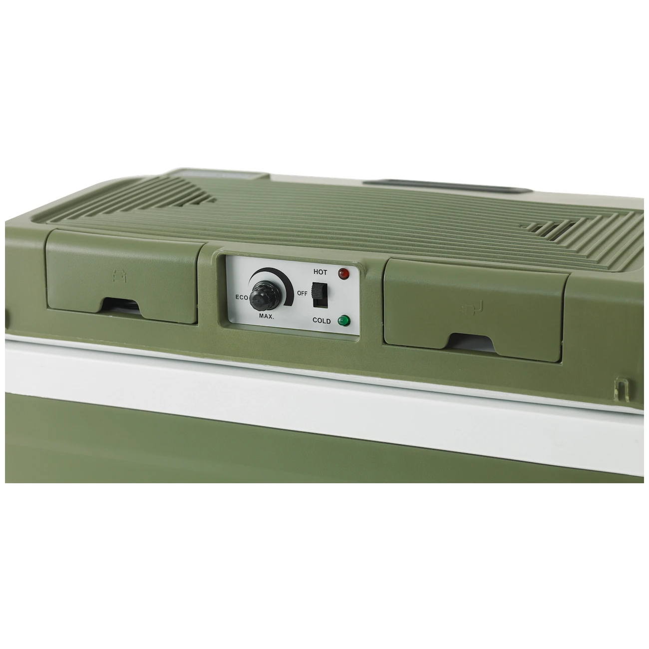 Frigiderul este alimentat cu un cablu de 12V cu lungimea de 2m sau un cablu de 230V cu lungimea de 1,8m. Livrat cu adaptor 230V și cabluri pentru prize din UE și Marea Britanie.