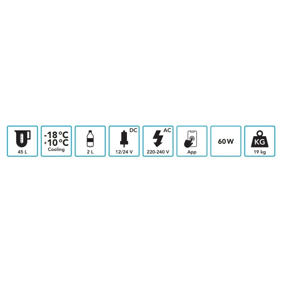 Are un interval de răcire de la +10 °C la -18 °C. Acest lucru înseamnă că îl puteți folosi și ca congelator. Pur și simplu setați temperatura dorită cu ajutorul ecranului tactil LCD de pe cutie. Temperatura ambientală nu are niciun efect asupra performanței de răcire a acestei lăzi frigorifice, astfel încât vă puteți bucura oricând de o înghețată răcoritoare în fața rulotei dumneavoastră! Acest frigider are aceeași capacitate de răcire la 12 V ca și la 230 V. Cu alte cuvinte, îl puteți utiliza în mașină, dar îl puteți conecta și la o priză de perete. Pentru aceasta aveți nevoie de un adaptor (inclus).