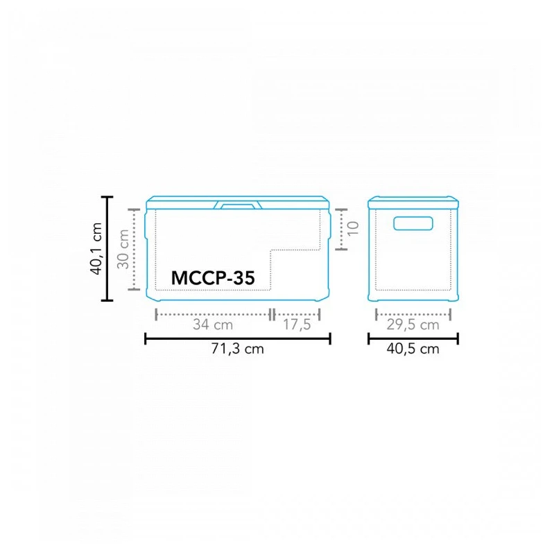 Răcitorul de călătorie Mestic Coolbox Compressor MCCP-35 AC/DC înlocuiește un frigider de dimensiuni normale. Datorită zonei duble, se răcește și se congelează în același timp. Cutia are un interval de răcire de la -18 °C la +10 °C. Pur și simplu setați temperatura utilizând afișajul digital.