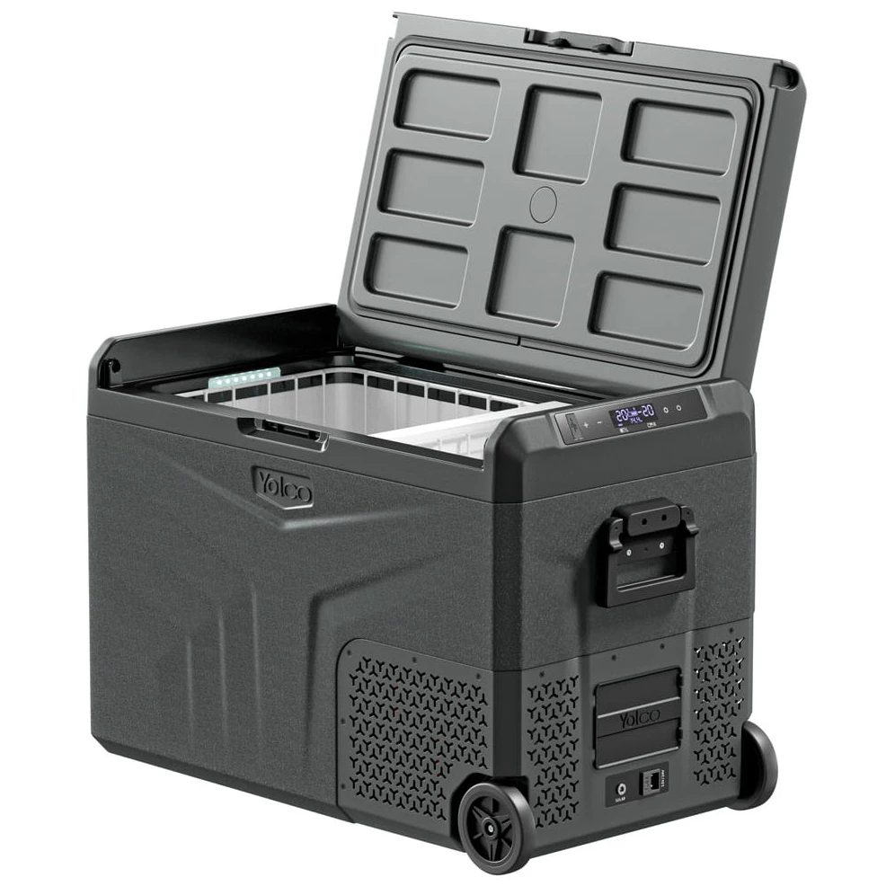 Yolco TCX50 este o ladă frigorifică portabilă cu compresor, performantă, cu o capacitate de până la 52 de litri. Oferă două compartimente separate, cu temperatură reglabilă individual, astfel încât să puteți răci și congela alimente simultan, după cum este necesar. În plus, separatorul detașabil permite ajustarea ușoară a spațiului interior.