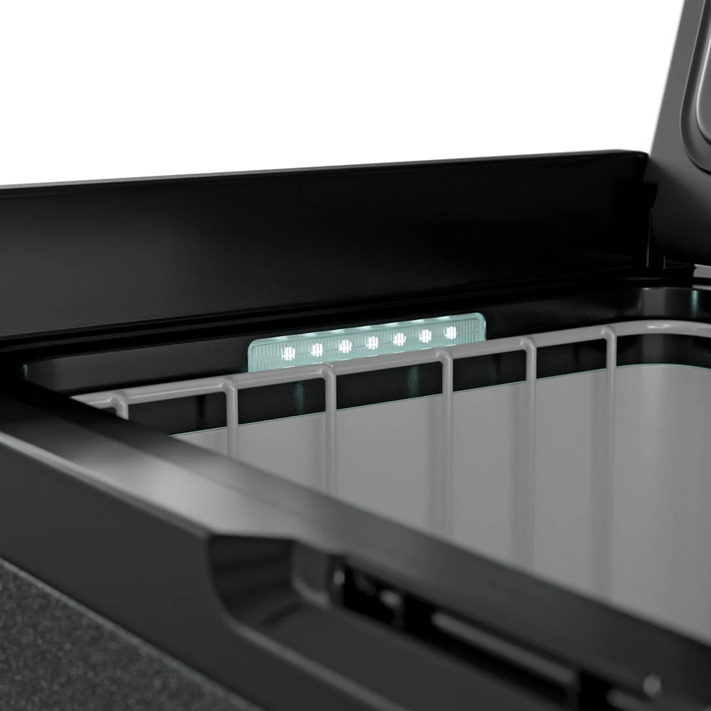 Panoul de control cu ecran LED permite reglarea rapidă și intuitivă a temperaturilor. Datorită tehnologiei integrate Bluetooth 5.0, puteți controla frigiderul în mod convenabil și prin intermediul aplicației mobile (Android/iOS). Iluminarea interioară, roțile, posibilitatea de a schimba direcția de deschidere a capacului, precum și protecția împotriva supratensiunii și descărcării bateriei vehiculului fac din TCX50 un produs cu adevărat bine gândit și fiabil.