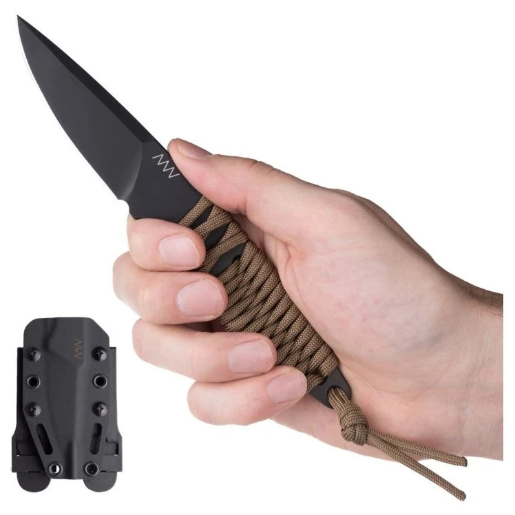 Cuțitul cu lamă fixă P100 Dlc/Plain edge de la brandul Acta Non Verba are un design minimalist și o greutate redusă de 62 g. Este fabricat în întregime din oțel inoxidabil Böhler N690 extrem de durabil, prelucrat cu precizie și șlefuit într-un instrument fiabil. Pe lângă designul minimalist, se remarcă greutatea redusă și profilul extrem de subțire. Materialul mânerului este țesut cu paracord, astfel încât se poate alege în culoarea preferată.