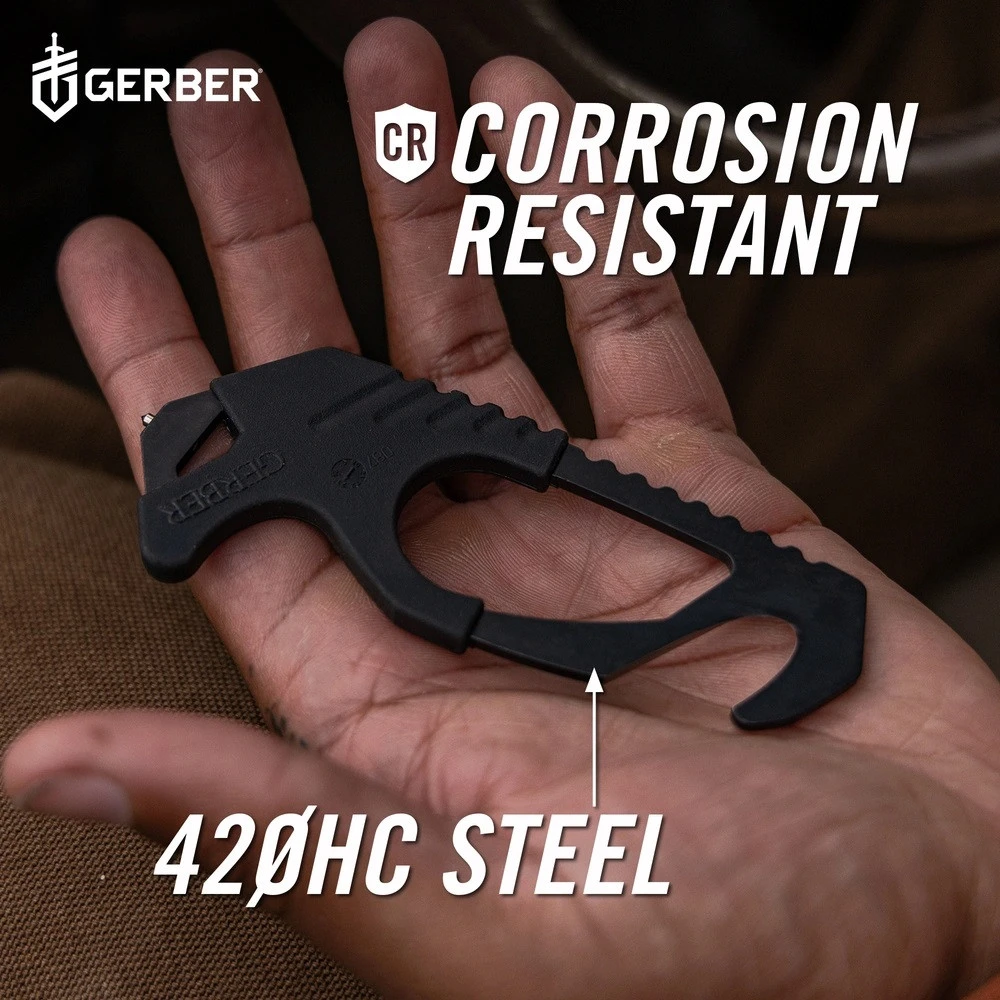 Cuțitul de salvare Gerber Strap Cutter este compact și ușor, astfel încât îl puteți avea întotdeauna la îndemână. Finisajul închis la culoare garantează discreția, în timp ce instrumentul este disponibil în mai multe variante de culoare.
