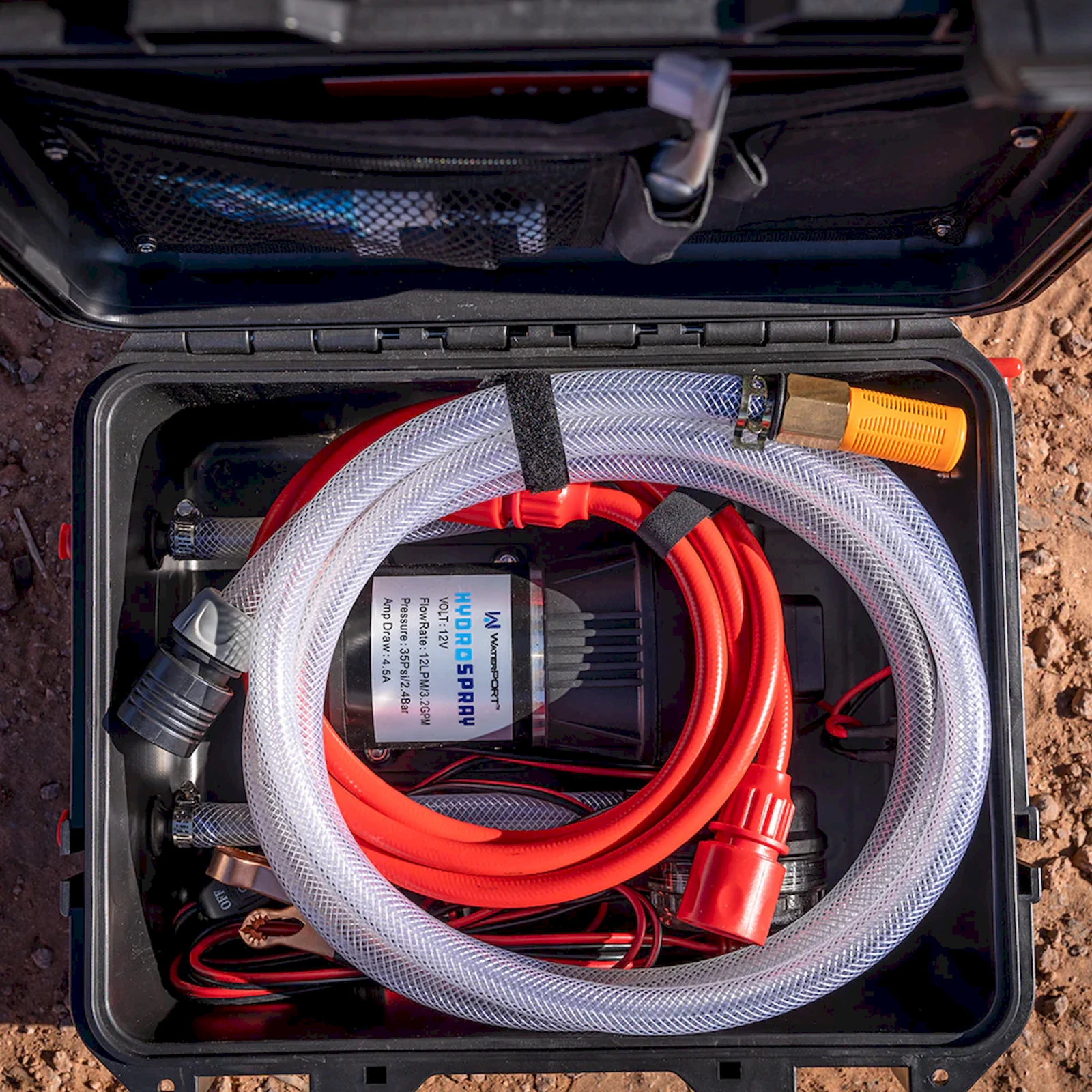 HydroSpray este partenerul ideal pentru aventurierii care doresc să rămână curați chiar și departe de civilizație. Aparatul este echipat cu un sistem de furtunuri de aspirație și evacuare, elemente de conectare rapidă și un cap de duș cu cinci poziții pentru un spray fin tip ceață și un jet puternic. Datorită filtrului încorporat cu sită fină, puteți extrage apă direct din lacuri, râuri sau alte surse naturale, fără a risca înfundarea pompei și pierderea performanței.