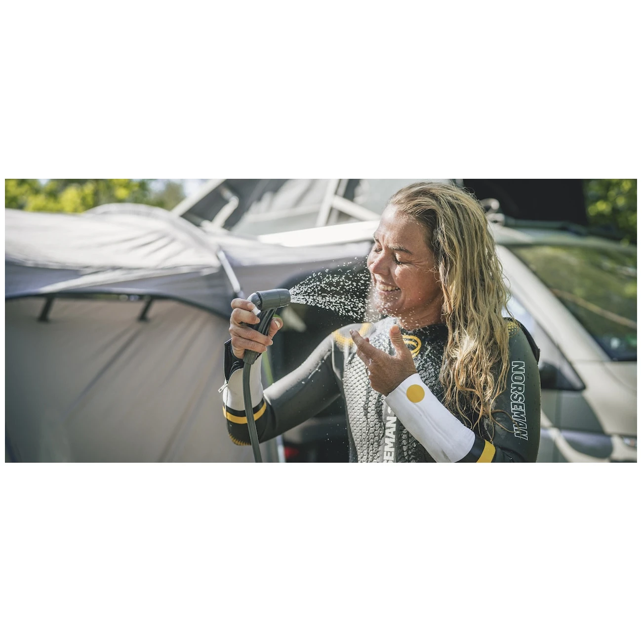 Dușul de camping Outwell Seabreeze Pressure Shower cu o capacitate de 12 litri este un ajutor excelent în călătorii, deoarece nu aveți nevoie de o sursă de energie pentru funcționarea sa.