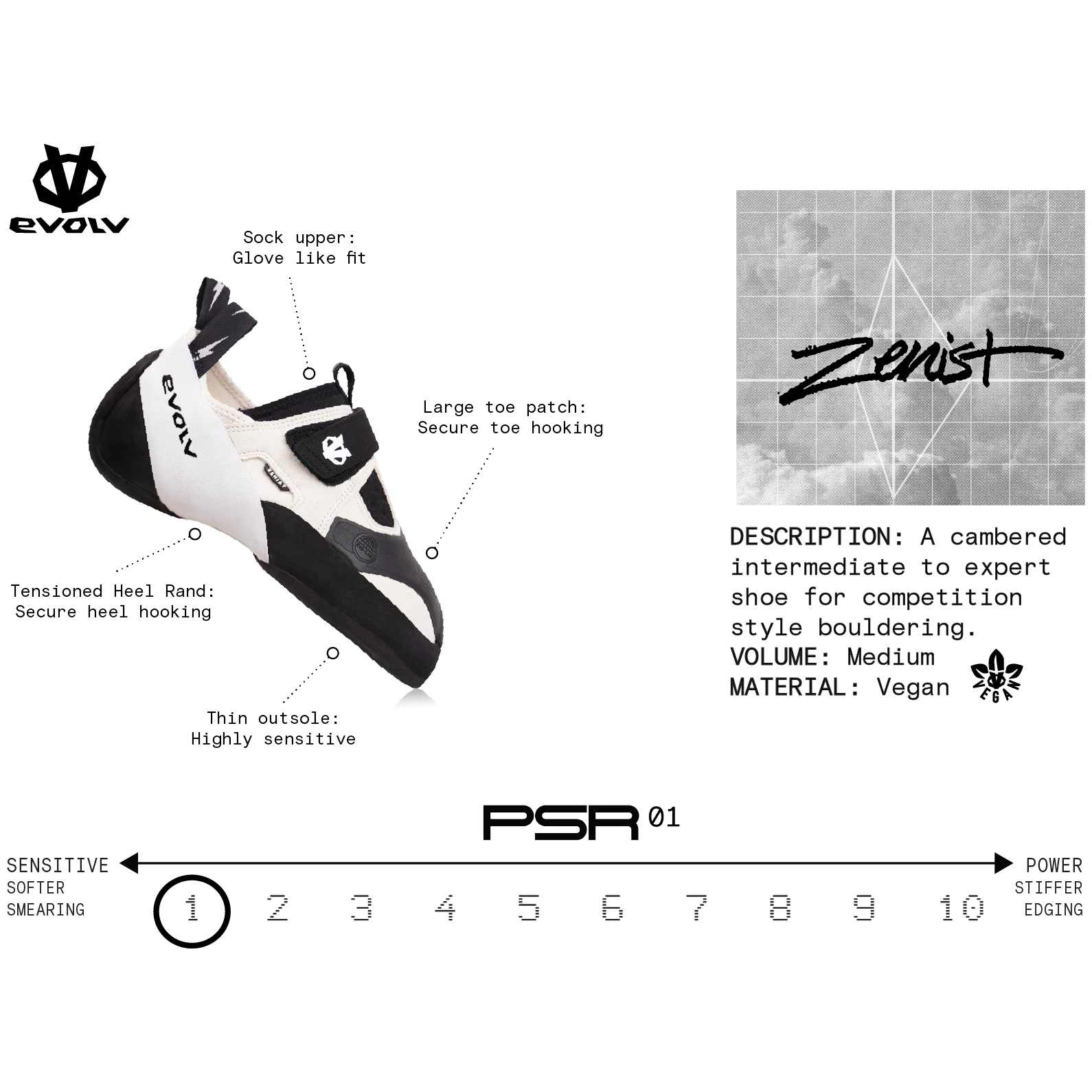 Zenist, un model universal de pantofi de alpinism pentru bărbați și femei cu care nu veți da greș. Cea mai sensibilă încălțăminte de escaladă de la Evolv este un răspuns necompromițător la boulderul modern. Fiind cea mai moale încălțăminte din gama Evolv, permite alpiniștilor să simtă fiecare detaliu de sub picioare și să-și poziționeze corpul în poziția ideală pentru următorul pas.