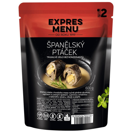 Mâncărurile din meniul producătorului Expres sunt potrivite nu numai pentru excursii sau camping, ci și pentru zilele aglomerate în care nu aveți timp să gătiți, dar totuși doriți să vă răsfățați cu o masă de calitate și gustoasă. O felie de carne de vită este unsă cu muștar, acoperită cu un ou fiert, castravete și slănină, întoarsă și înăbușită până când devine fragedă.