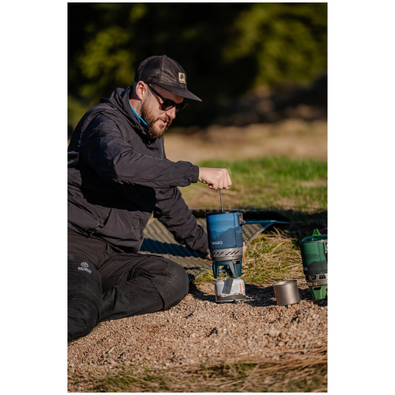 French press Warg Coffeetowe transformă arzătorul Warg Flametower și Flashtower într-un recipient pentru prepararea cafelei filtrate printr-un singur pas ușor. Filtrul ușor și compact este proiectat pentru toți iubitorii de cafea care nu vor să renunțe la gustul unui espresso proaspăt preparat nici în afara civilizației.