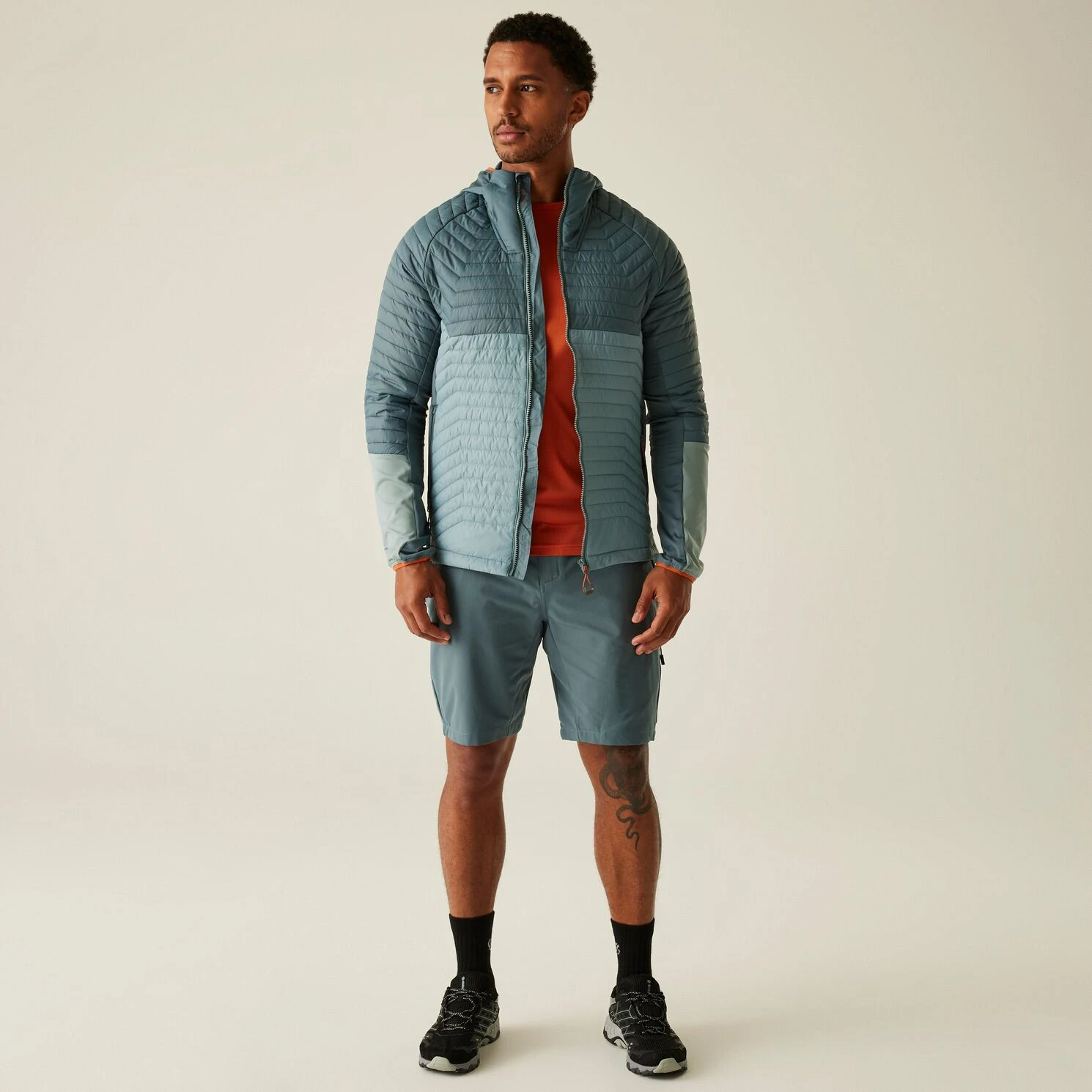 Geacă hibridă pentru bărbați Dare 2b Descending II Hybrid este fabricată din material tehnic iLUS. În mijlocul panourilor frontale și dorsale se află umplutura Iloft Ecofill, care încălzește fiabil, este excelent de împachetat și este acoperită cu țesătură ripstop. Datorită acestui lucru, protejează împotriva vremii nefavorabile.