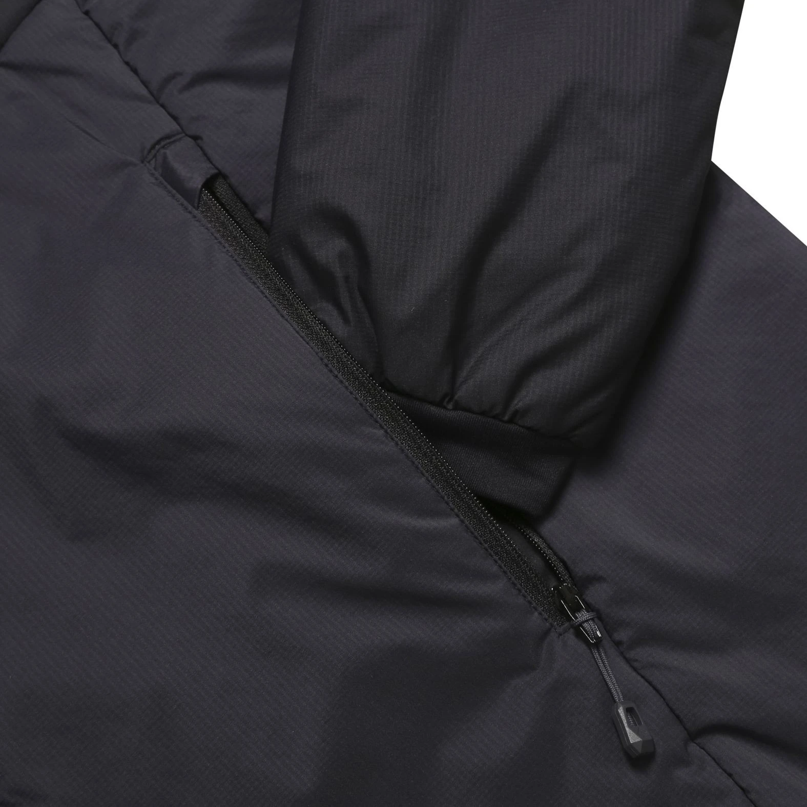 Materialul superior Pertex Quantum Air este rezistent la vânt și respirabil, prevenind migrarea pufului prin țesătură. Jacheta are trei buzunare cu fermoar, un fermoar central cu doi cursori bidirecționali, manșete elastice și elemente reflectorizante pentru o siguranță sporită.