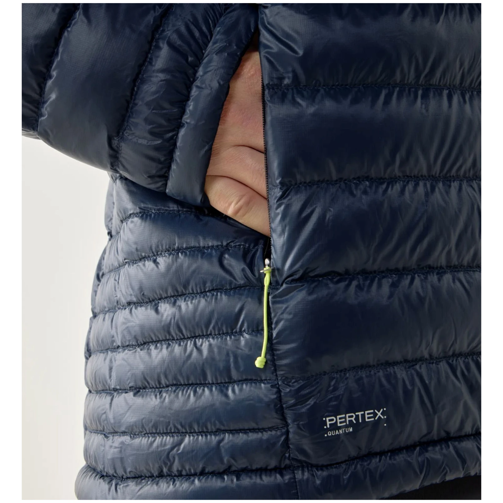 Materialul exterior Pertex Quantum din poliester 100% reciclat este hidrofug și rezistent la vânt. Fermoarul frontal este cu două căi, ceea ce asigură o mai bună mobilitate și confort în timpul mersului. Include buzunare pentru mâini pentru încălzire și manșete interioare la mâneci, care protejează împotriva pătrunderii vântului.