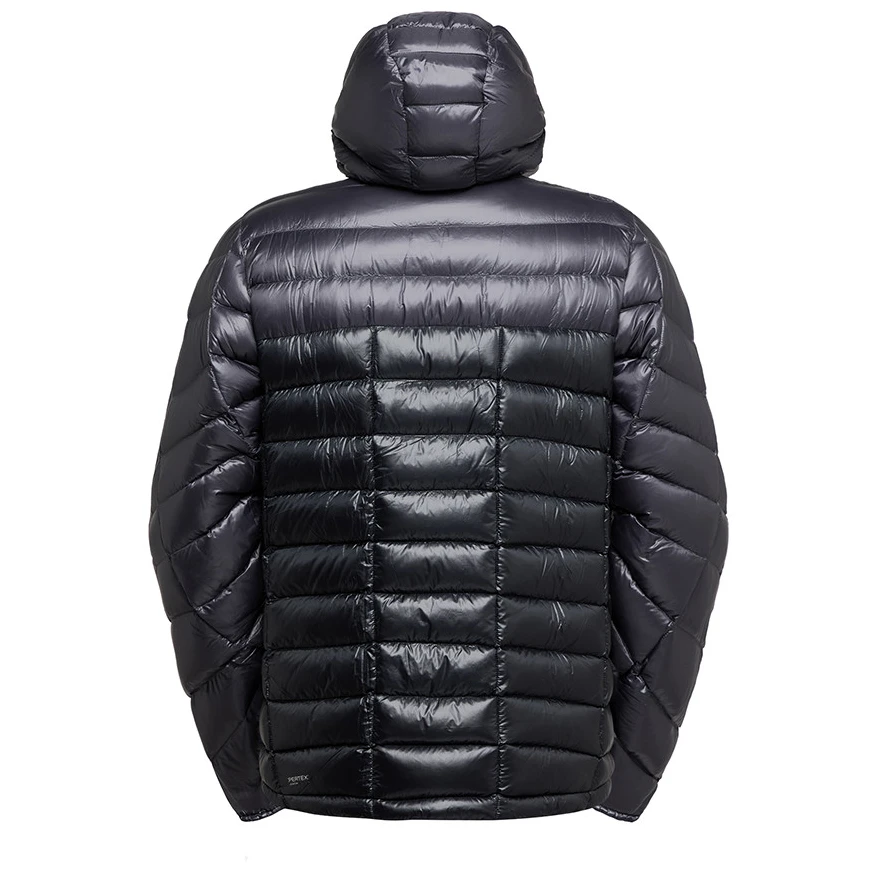 Jacheta este fabricată din materialul superior dovedit Pertex® Quantum, care excelează printr-un raport excepțional între greutate redusă, durabilitate și respirabilitate. În același timp, este rezistentă la vânt și parțial rezistentă la apă. Umplutura izolatoare este formată din puf de gâscă italiană cu o capacitate de umplere de 1000 cuin (124 g), care reprezintă cea mai călduroasă și mai compactă izolație din prezent – formând aproximativ jumătate din greutatea totală a jachetei.