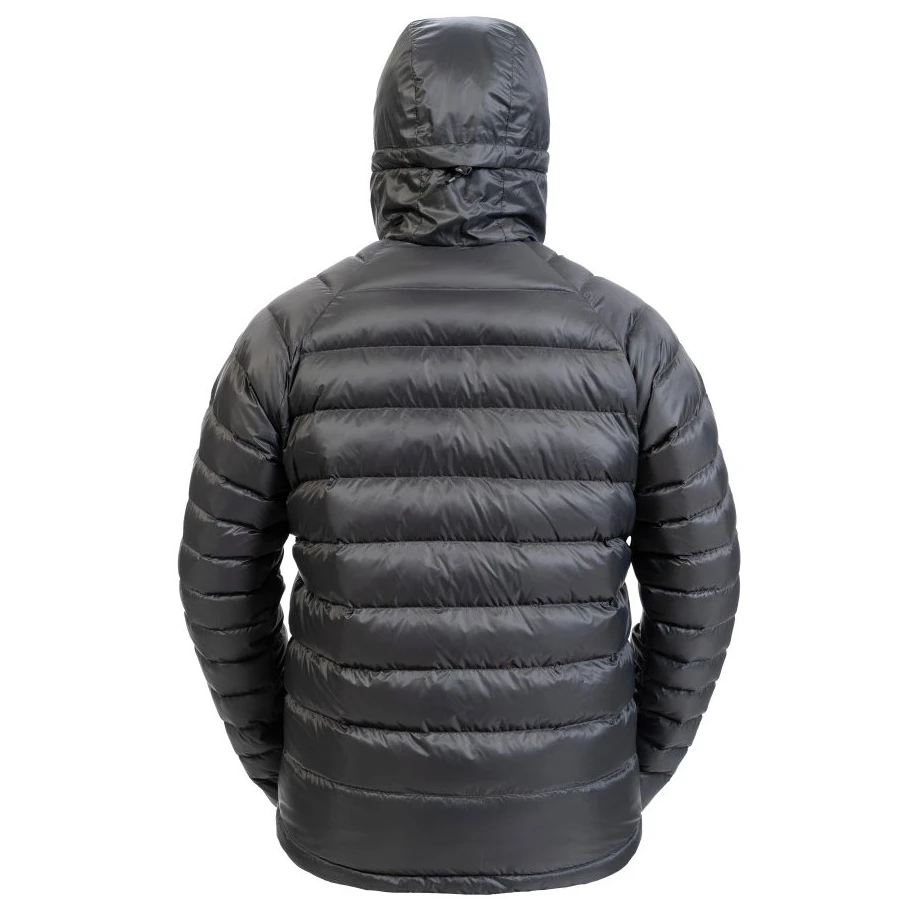Materialul exterior este fabricat din material textil Toray™ Airtastic™ de cea mai bună calitate, cu finisaj hidrofug DWR, respirabilitate excelentă și un raport excelent între greutate redusă și durabilitate. Confortul termic principal este asigurat de 98 g de puf de rață european reciclat, cu o putere de umplere de 650 cuin (mărime). M), certificat de GRS.
