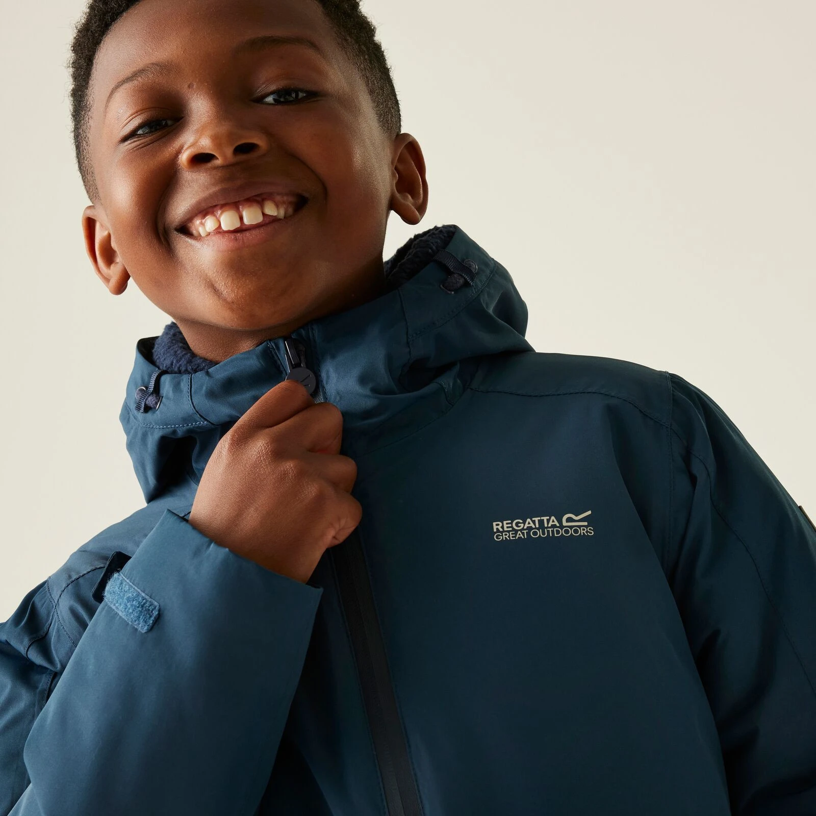 Geaca pentru copii Farbank II de la Regatta este confecționată din material Isotex 10000 impermeabil și respirabil. Geaca are cusături lipite pentru o protecție perfectă împotriva intemperiilor. De asemenea, include izolație Warmloft și o glugă cu căptușeală din material sherpa, care asigură căldură plăcută.