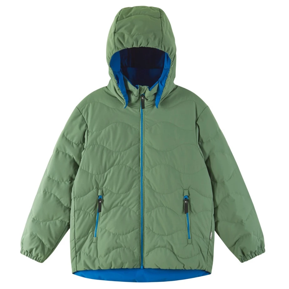 Geaca din pene pentru copii Fossila de la Reima este articolul universal și ideal pentru cei mici. Geaca este cusută din material 100% din poliester reciclat. Materialul utilizat este dotat cu tratament de suprafață Teflon EcoEliteTM care respinge apa și murdăria. Căldura este asigurată de izolația din pene cu certificare Responsible Down Standard. Geaca are o croială confortabilă și o glugă detașabilă.