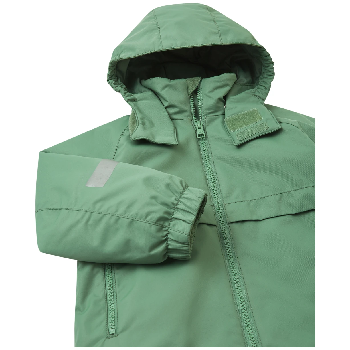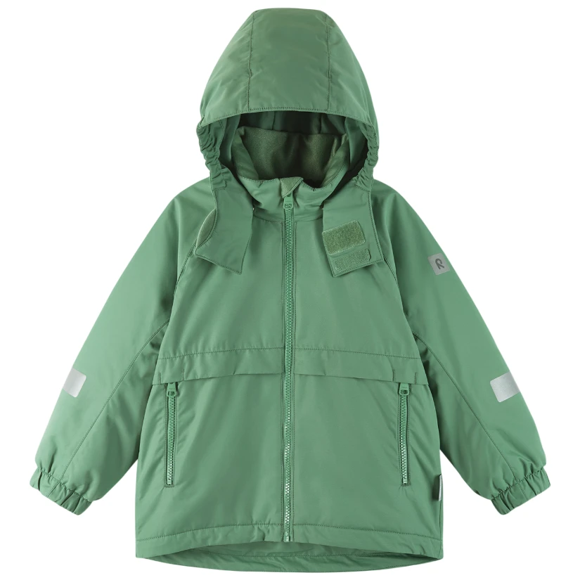 Geaca de iarnă pentru copii cu membrană Reima Raisio este confecționată din material respirabil, rezistent la vânt, apă și murdărie. Are o croială dreaptă universală, căptușeală netedă din poliester și este căptușită cu material Fellex. Toate cusăturile sunt lipite. Are o glugă detașabilă, un guler înalt și două buzunare cu fermoar. Se închide cu fermoar pe toată lungimea părții frontale, cu protecție pentru bărbie. Partea din spate este prelungită, iar tivul inferior poate fi strâns. Mânecii sunt finisate cu manșete elastice. Poate fi uscată în uscător după spălare.